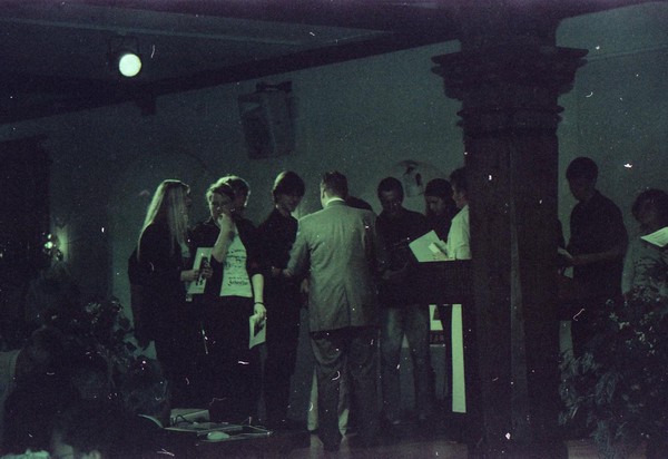 in der gebraucht erworbenen kamera steckte noch ein film, nach der entwicklung sieht man, dass er schon sehr lange da drin steckte. wir sehen jugendliche, die in einem dunklen raum offiziell gefeiert werden, konfirmation oder firmung, da kenne ich mich nicht aus. ein stolzer vater/opa (es sind meist männer) fotografiert vom zuschauerraum, nichts spektakuläres, eher langweilig banal. und doch muss sich der unbekannte die frage gefallen lassen, warum er die bilder nie entwickelt hat? ist etwas vorgefallen? oder war es nur vergesslichkeit?