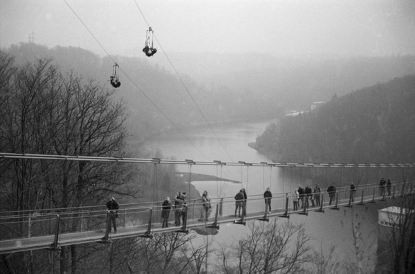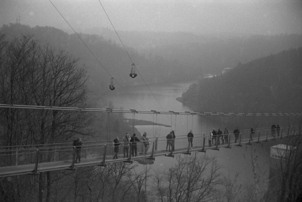 spaziergang durch bad harzburg. besuch an der rappbodetalsperre, da haben sie eine lange brücke für fußgänger gebaut ("titan rt"). plus skizzen mit der nikkormat: