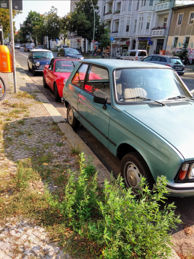 vorm haus jetzt nur noch oldtimer. sieht man auch schön, wie klein autos früher waren.