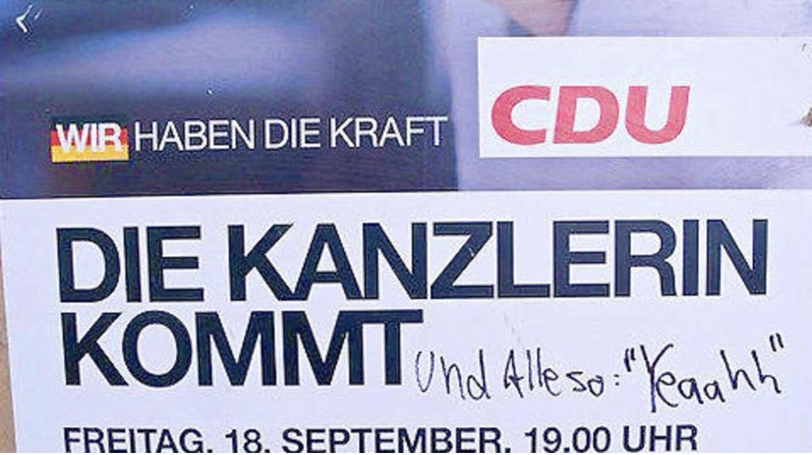 liebes tagebuch, heute radelte ich an den im stau stehenden autos in der friedrichstraße vorbei, bisschen eng, da gibts kaum radinfrastruktur. aber immerhin bleibt den motorisierten kraftfahrzeugführern und -führerinnen genug zeit die cdu-plakate zu lesen (viel text ist nicht):