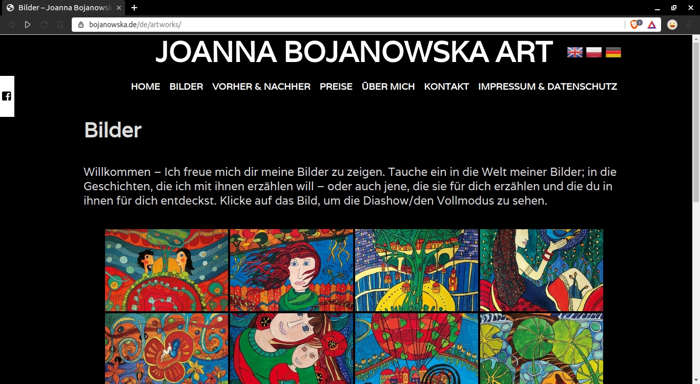 Seit Ewigkeiten mal wieder eine website gebaut. Diesmal für Asia (fb) und ihre tollen Bilder. Inklusive Mehrsprachigkeit, Formular, SSL und Bildergalerie. Das ganze natürlich auf wordpress und mit einigen Plugins.