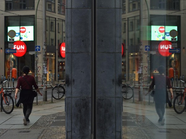 wir nähern uns der stadt, indem wir sie uns photographisch und ästhetisch aneignen. die stadt ernährt uns mit ihren eindrücken, bildern, geschichten. wir müssen nur vor die tür treten, die kamera mitnehmen und losstapfen, richtung egal. hinter jeder kreuzung eine andere welt und hinter tausend stäben keine welt. forschen schrittes erklimmen wir den prenzlauer berg, düstere wolken ziehen über die weinberge am rosenthaler. im wald unter den linden sie sonntägliche waldesruh, zieht es uns zum tore hinaus. vorbei am schloß, das sie wieder hübsch aufgebaut haben und sich selbst zitieren. ein in stein gebaute selbstreferenz, um sich zu vergewissern, noch da zu sein. leuchtend das christliche kreuz auf der kuppel, ein erbärmlicher rückgriff auf glorifizierte vergangenheit.