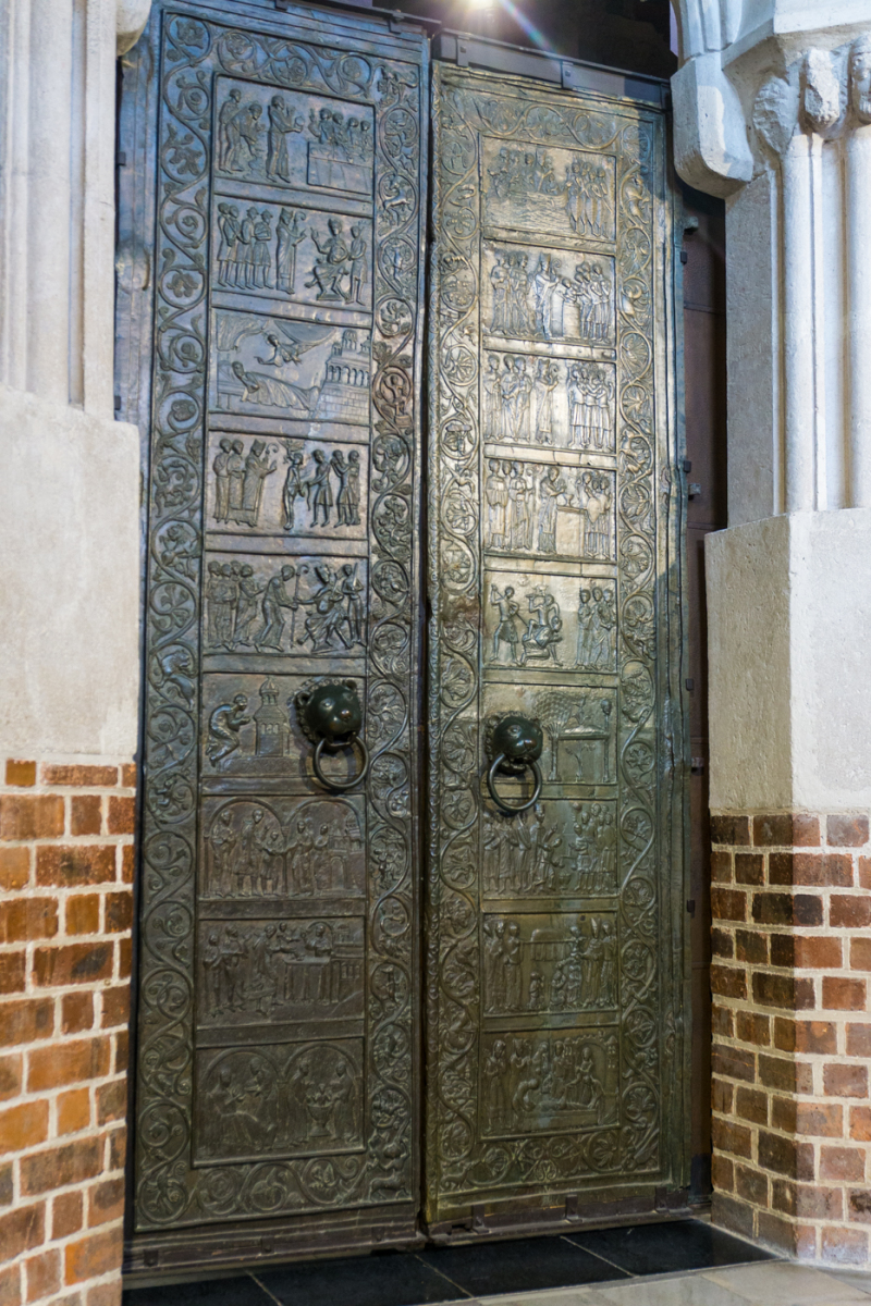 wir besuchen gniezno, eine kleine stadt in der mitte polens. die kathedrale am rande der altstadt auf dem lech-hügel beherrscht das stadtbild. wir stehen vor der berühmten tür und lauschen dem audioguide.