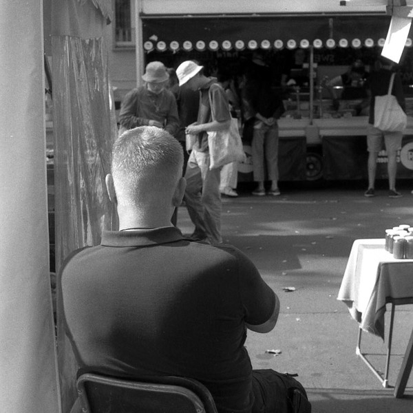 samstäglicher spaziergang um den kollwitzplatz, wasserturm, wochenmarkt. der fomapan 200 ist ein gutmütiger, zuverlässiger tschechischer film, macht spaß mit ihm. war letztens schon im einsatz, da kaufe ich noch ein paar rollen. der elefant ist eine doppelbelichtung.