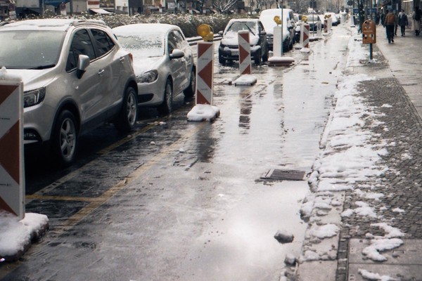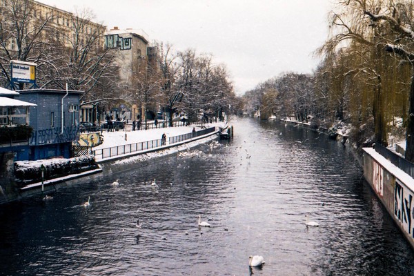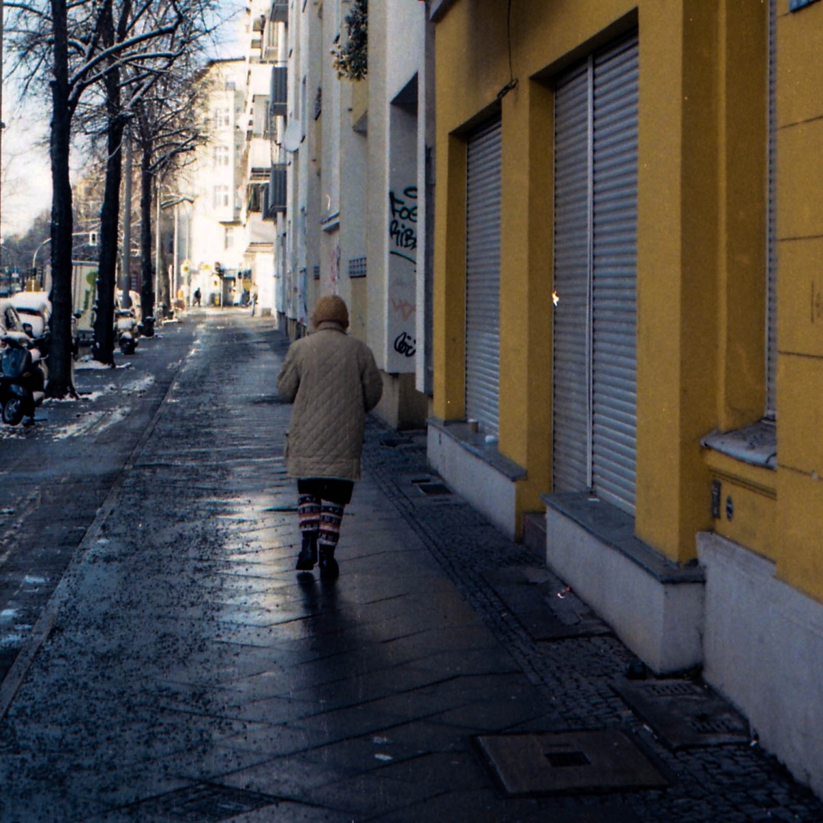 besuch in neukölln und kreuzberg, eine demo am hermannplatz. schnee in den straßen, die sonne scheint grell, januar in berlin.