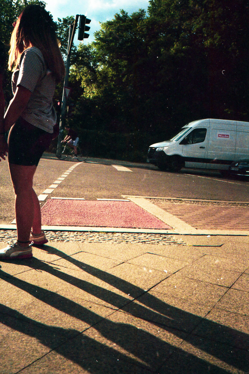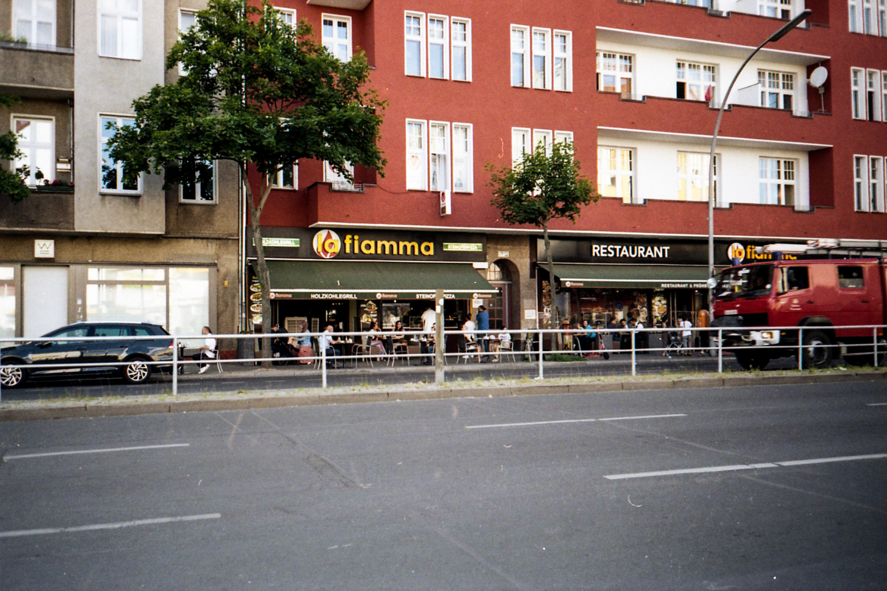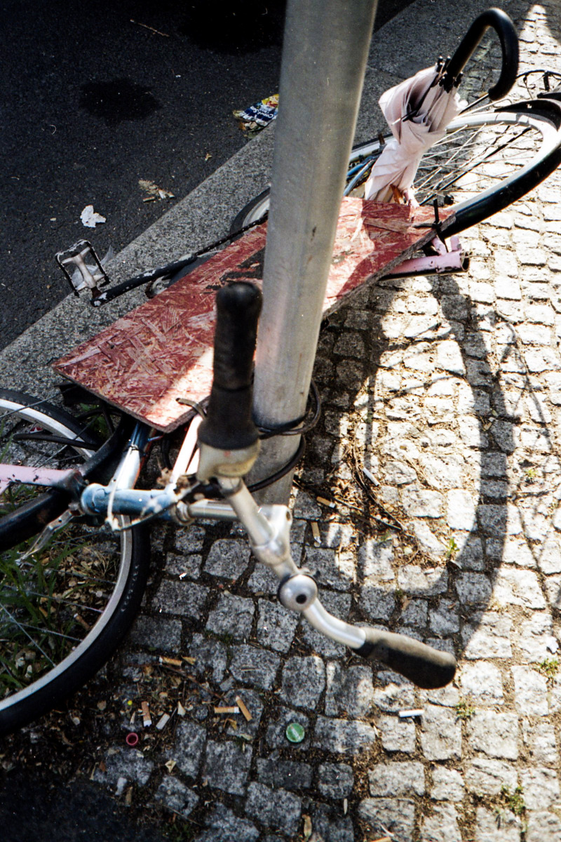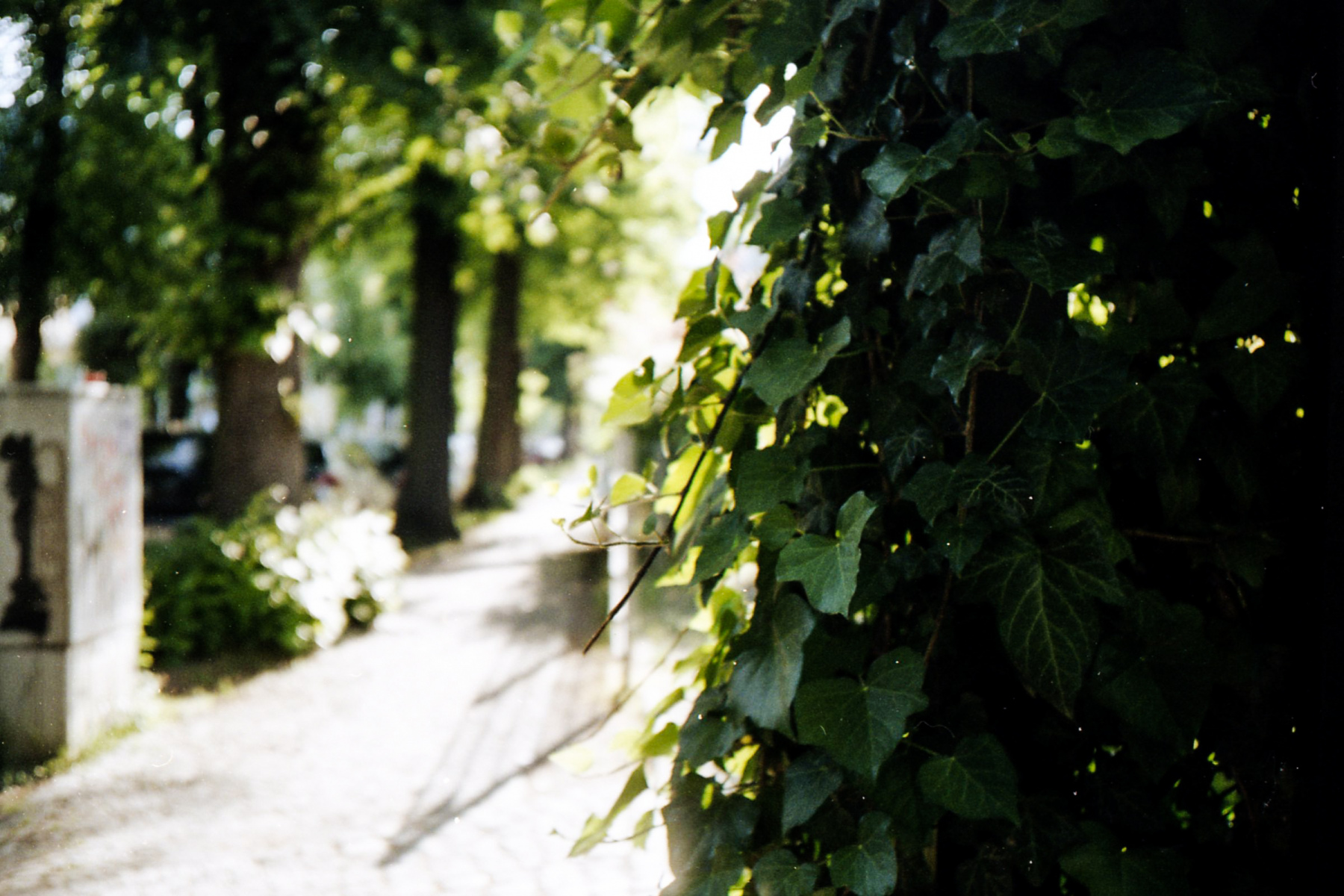 spaziergang durch wedding und mitte, wo auch dieser thread entstand. die kleine olympus von 1991 ist derzeit völlig überteuert, liefert anständige und knackscharfe ergebnisse und ist wirklich mini. sofort einsatzbereit nach dem aufschieben, nur noch schnell den blitz abschalten und knips knips. das rückspulen des films dauert ewig. mit dem sucher komponieren ist für anfänger, natürlich schießen wir aus der hüfte.