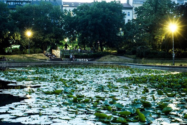 spaziergang durch das nächtliche pankreich, durch schöneberg und einen wald in brandenburg. eine eidechse sonnt sich in einem nadelgehölz, der kaktus blüht, die wäsche trocknet.