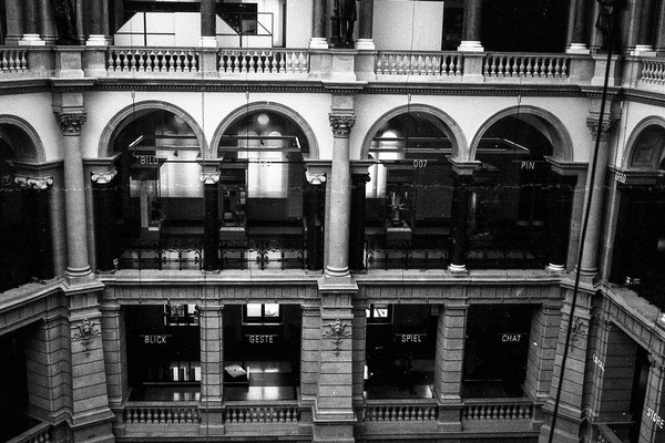 unterwegs mit der minox von 1979, besuch im museum für kommunikation. die arbeit mit der kleinen kamera ist gewöhnungsbedürftig, mit ein bisschen nachdenken gehts aber. schüsse aus der hüfte sind kein problem, nur blende und entfernung einstellen, lautlos auslösen, die zeit wird automatisch bestimmt.