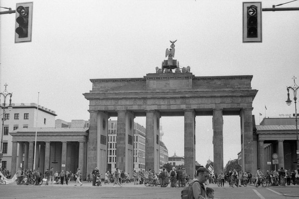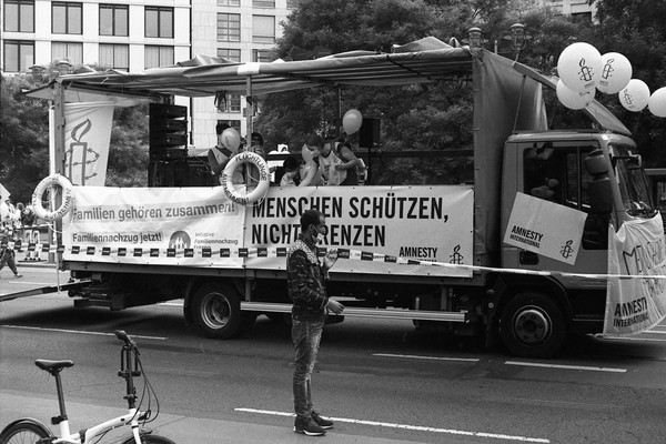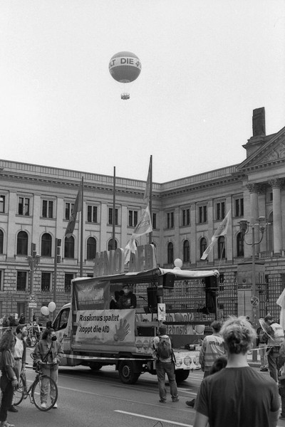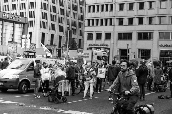 #unteilbar in berlin anfang september 2021 mit der zorki c. spaziergang nach niederschönhausen. die kamera bedient sich wie eine schraubleica, die belichtung ist geschätzt und sitzt überraschend gut. drei wochen vor der bundestagswahl ist die beteiligung an der demo überraschend gering.