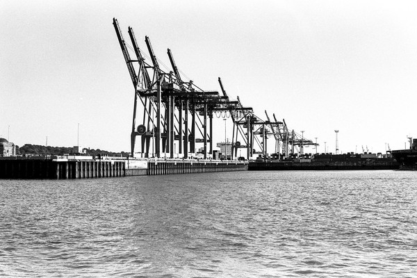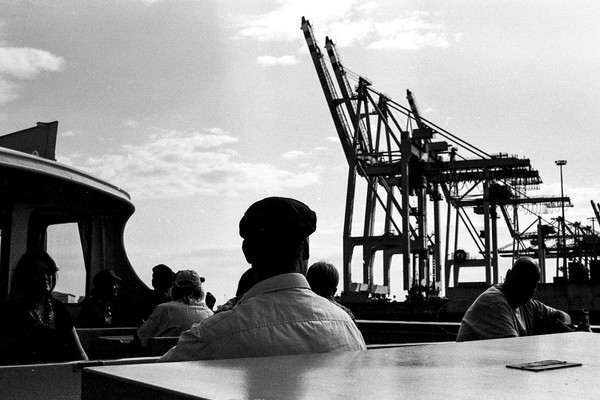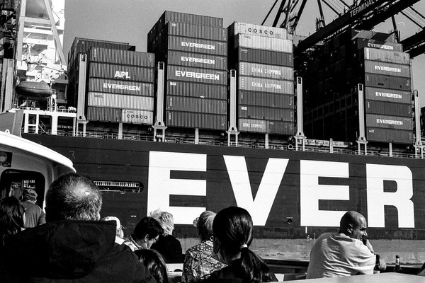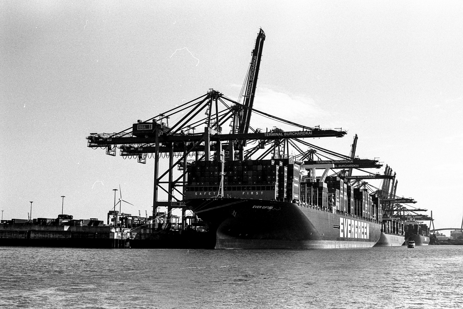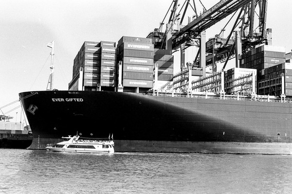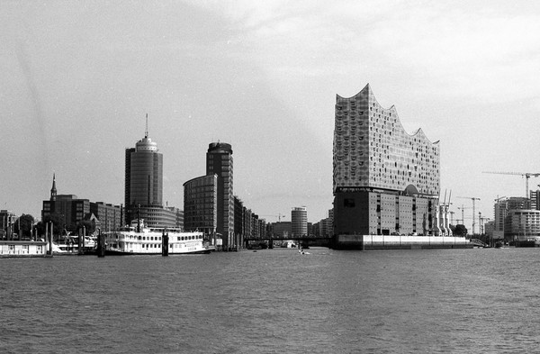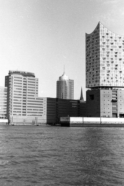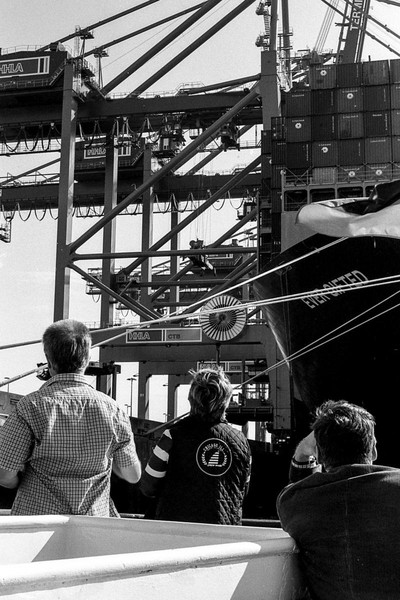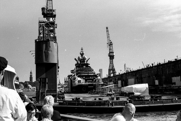 hafenrundfahrt in hamburg. vorbei an der ever gifted (nicht verwechseln mit der ever given), die gerade beladen wird. vorbei an der yacht eclipse eines russischen oligarchen. die skyline von hamburg, die elbphilharmonie. alles wunderschön im septemberlicht.