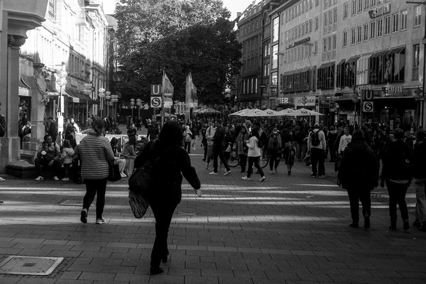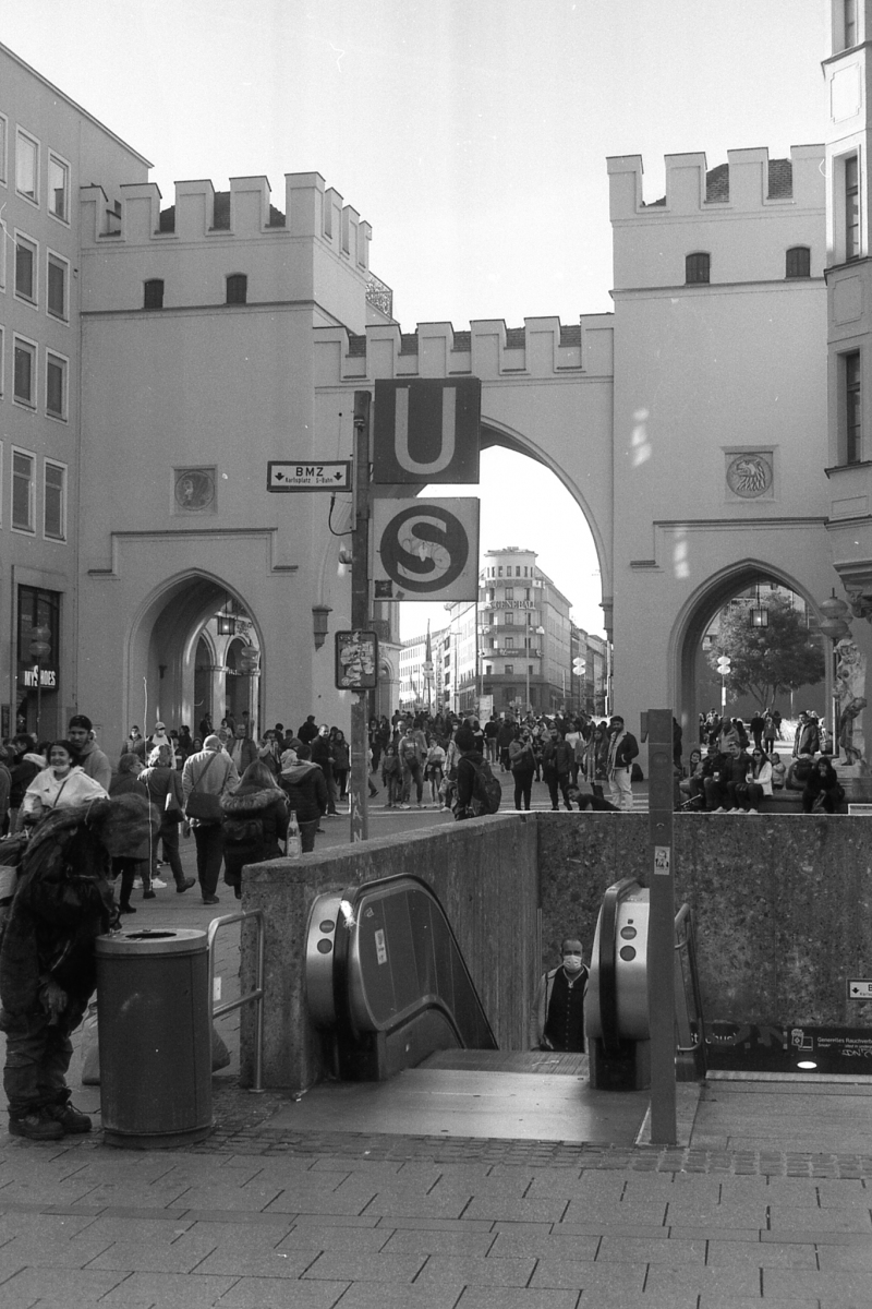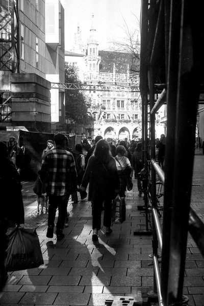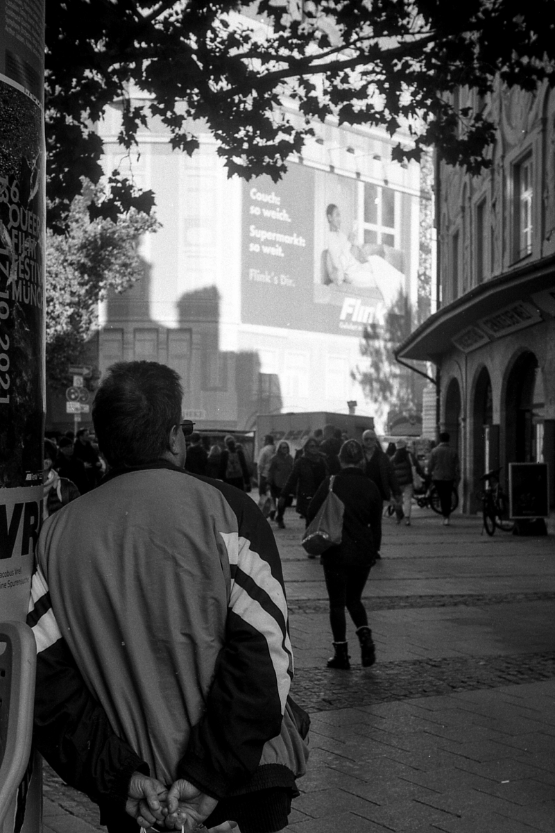 besuch in münchen im letzten oktober, die sonne lacht über bayern und die menschen tummeln sich in der innenstadt. es gibt kein oktoberfest. die hauptsatdt der bajuwaren wirft harte schatten, die belichtung passt, die leica liefert (diesmal) zuverlässig.