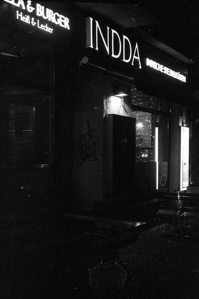 000119 - 11/2021 Apr 5, 2022 📷 Leica IIc 🎞️ Ilford 400 HP5 Plus 🥫 Kodak D76 1+0 9,5min 💻 Epson Perfection V330 Photo rundgang im dunklen pankreich, belichtung geschätzt. ein bischen länger wäre wohl besser gewesen. 📂 35mm 🏷️ 35mm elmar leica nachtaufnahmen pankow pankreich