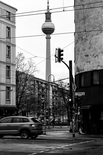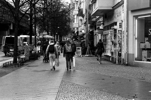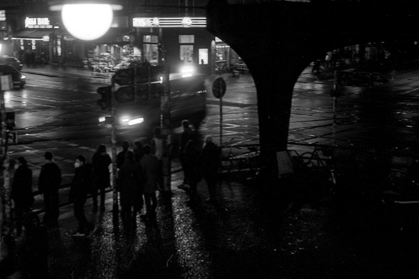 abendliche aufnahmen in mitte um den rosa-luxemburg-platz, spaziergang durch prenzlauer berg. berlin ist leer ende dezember und trostlos in zeiten von corona.