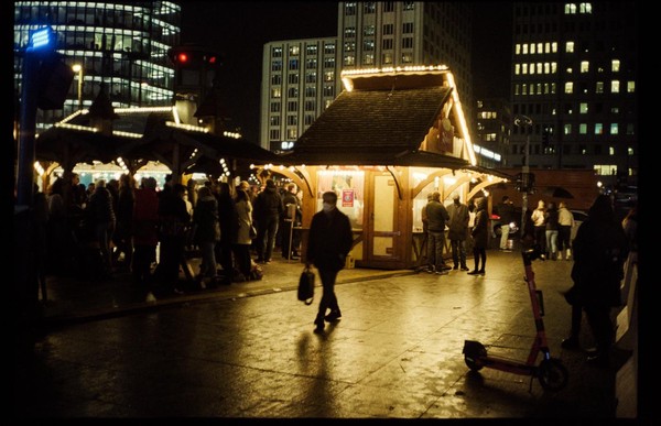 einen hochempfindlichen kunstlichtfilm (tungsten) am tage benutzen? warum nicht, an die regeln sollen sich andere halten. spaziergang durch wedding und prenzlauer berg, vermutlich samstags. ein verlassenes schwimmbad im wald in sachsen. der traurge weihnachtsmarkt am potsdamer platz.