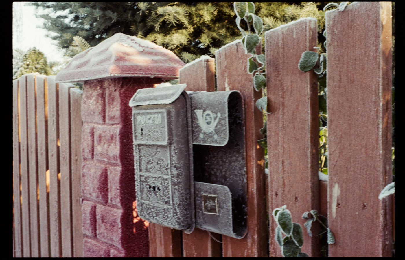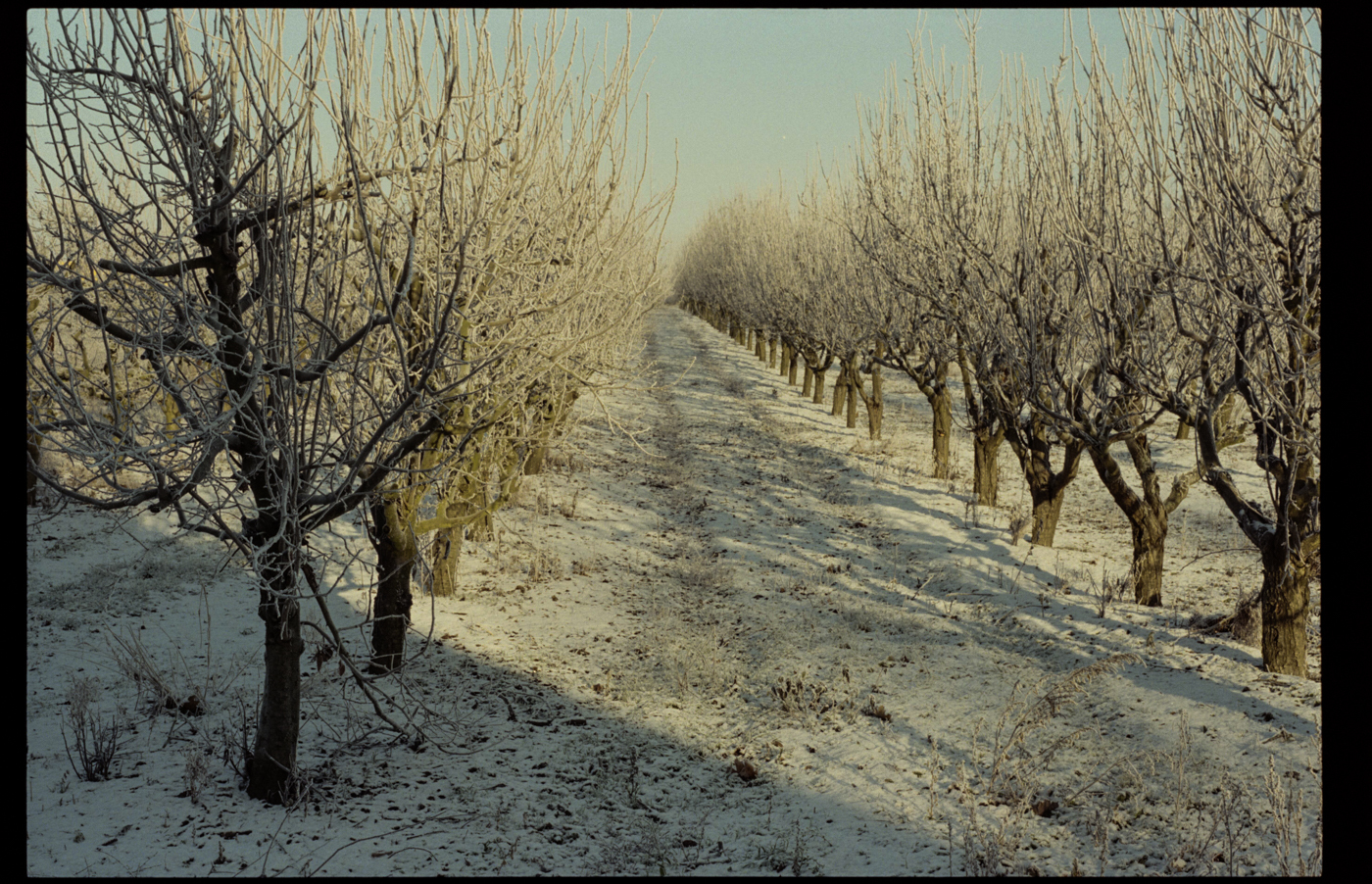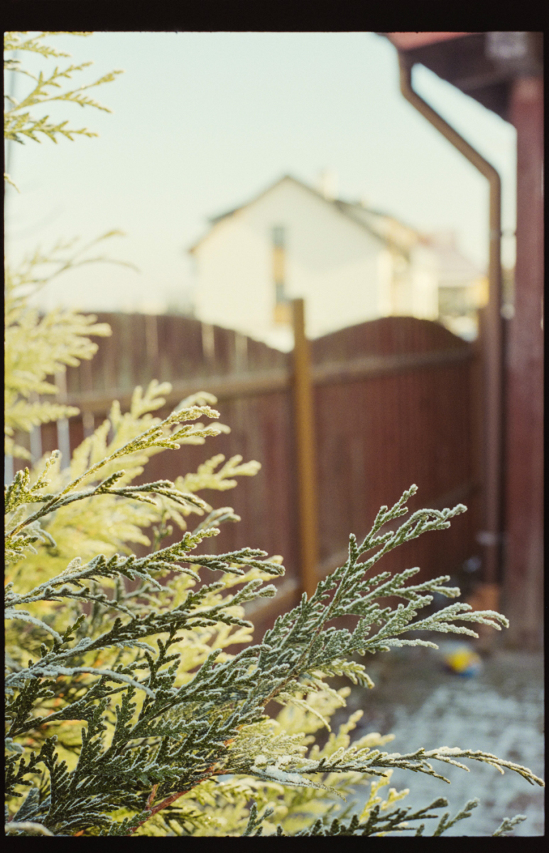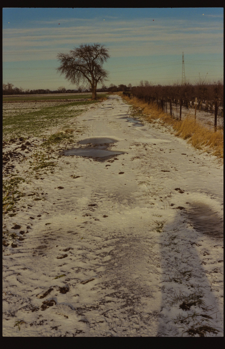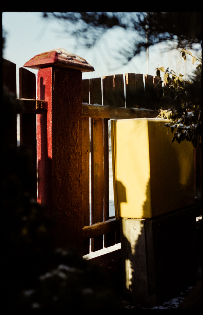 besuch in niederschlesien im dezember, es hat geschneit, alles ist gefroren und glitzert in der gleißenden sonne. die belichtung in der Nikon FA kommt auch ohne belichtungskorrektur klar, der tageslichtfilm liefert.
