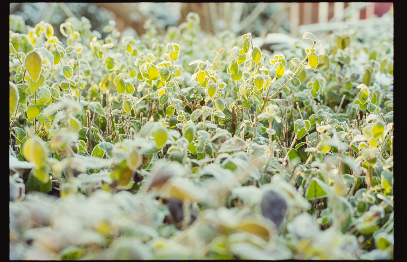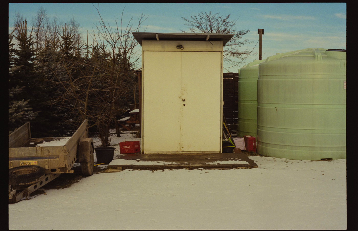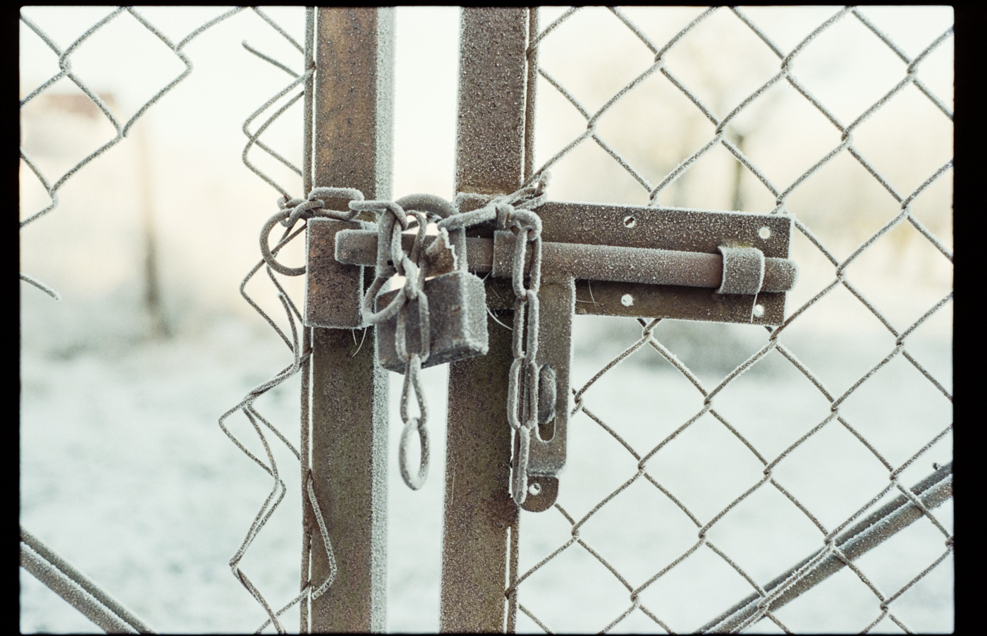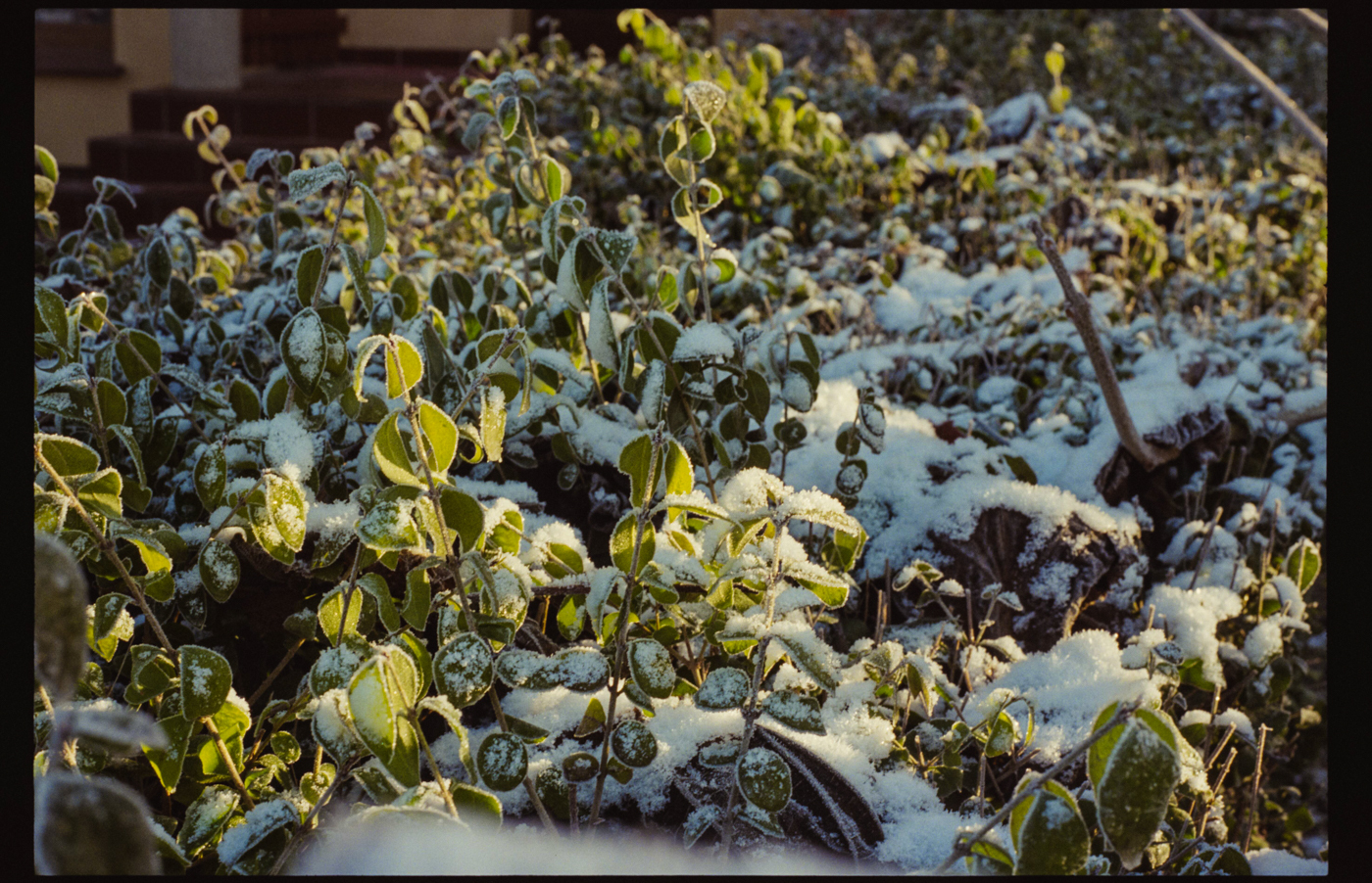 besuch in niederschlesien im dezember, es hat geschneit, alles ist gefroren und glitzert in der gleißenden sonne. die belichtung in der Nikon FA kommt auch ohne belichtungskorrektur klar, der tageslichtfilm liefert.
