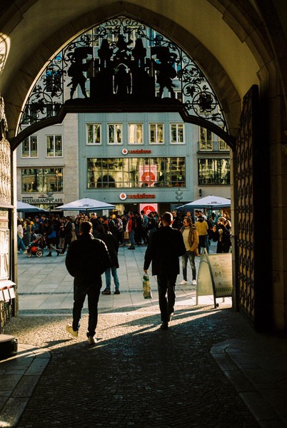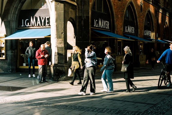 feines herbstlicht in münchen (zuvor in s/w), festgehalten mit der schraubleica auf portra 160. und ein spaziergang durch prenzlauer berg zu safelight in der schivelbeiner.