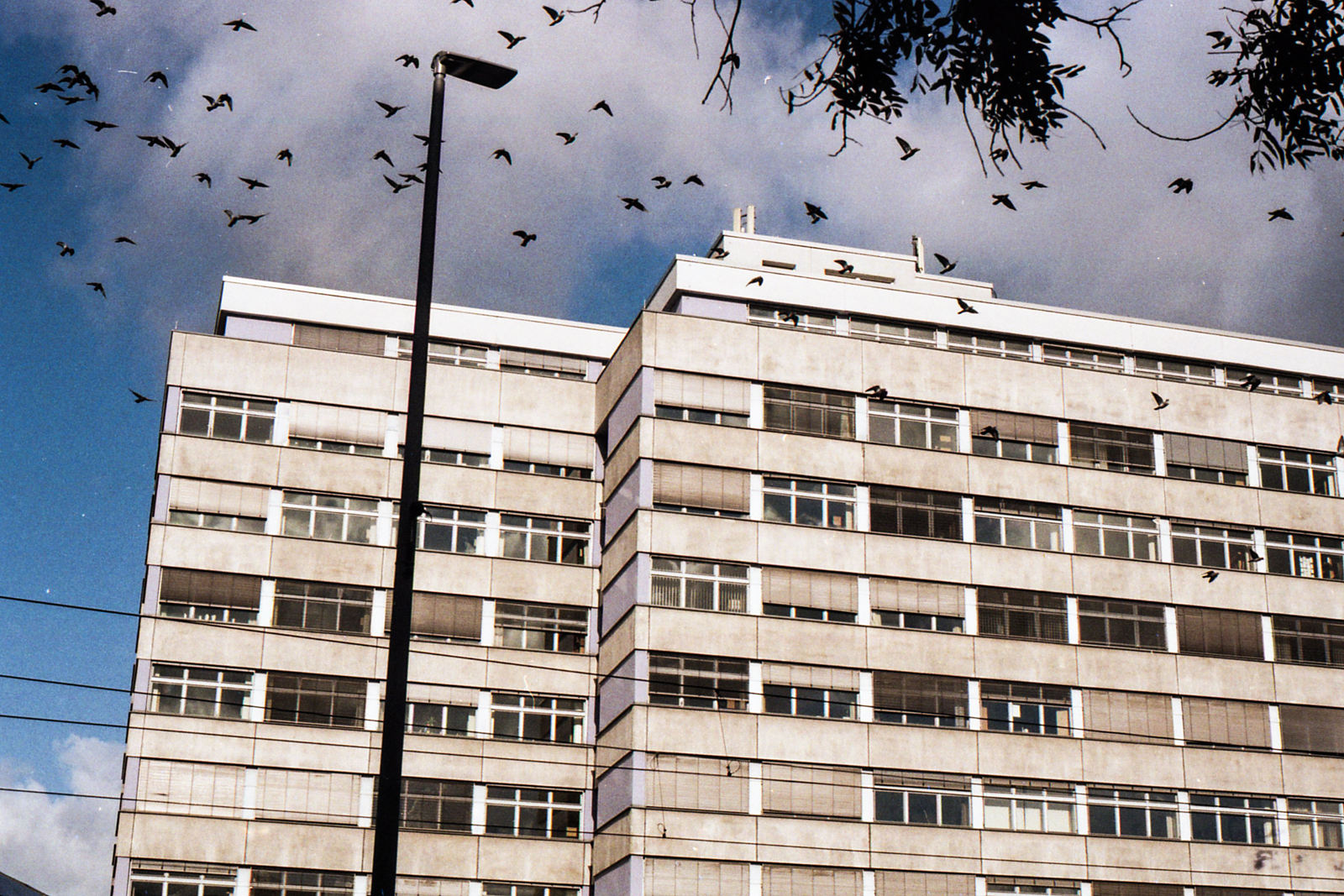 ein ausflug in den wedding rum um den ubhf nauener platz (hochstädter/liebenwalder/maxstraße), ein vogelschwarm am finanzamt osloer straße.