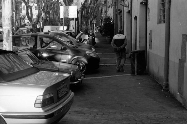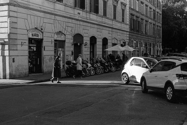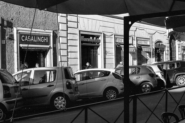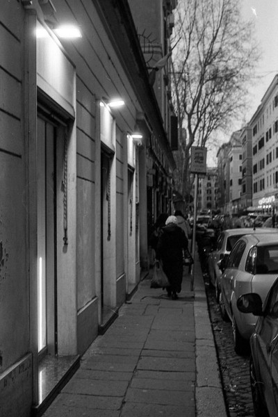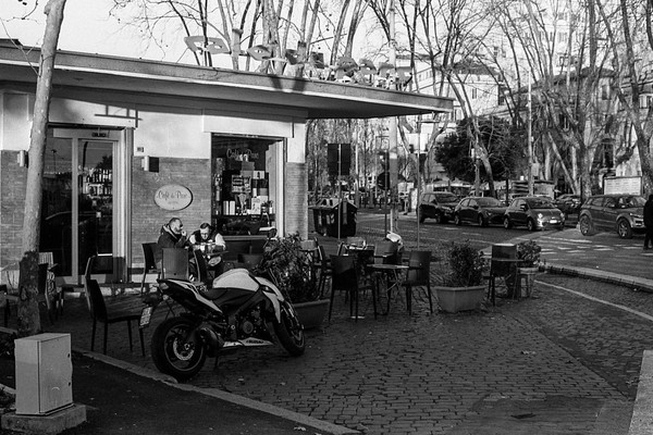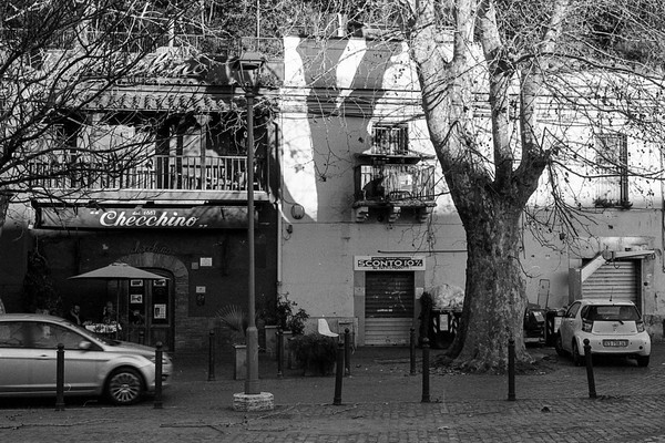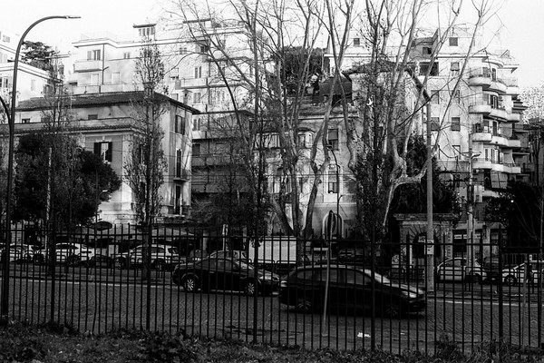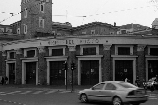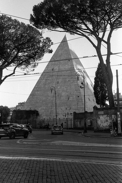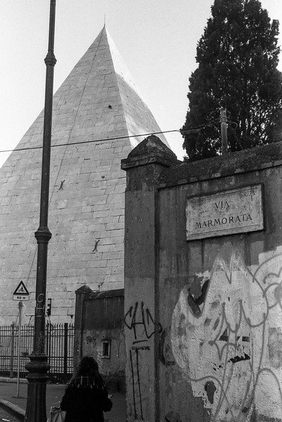 rom in schwarzweiß, die cestius-pyramide, die straßen um den monte testaccio - leider geschlossen. eine feuerwache. aus dem Mattatoio (Museo d’Arte Contemporanea di Roma) kommt schöne musik, wir sitzen auf einer bank und lauschen.