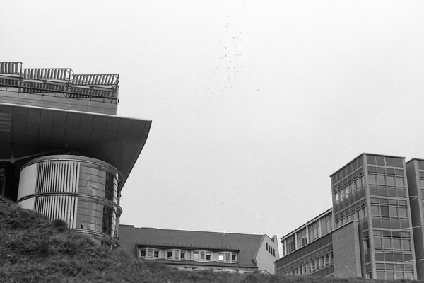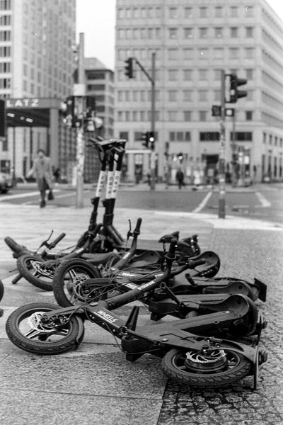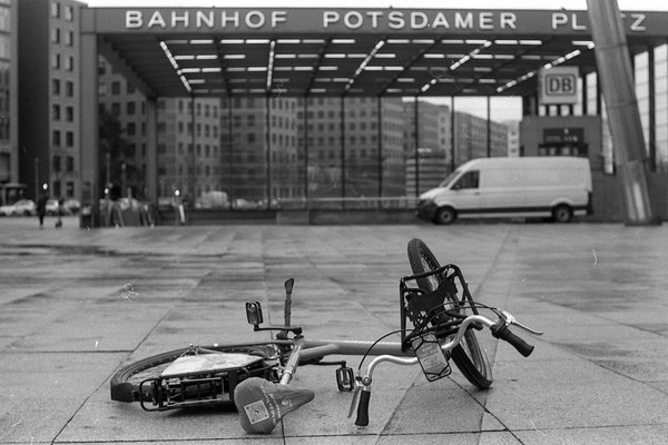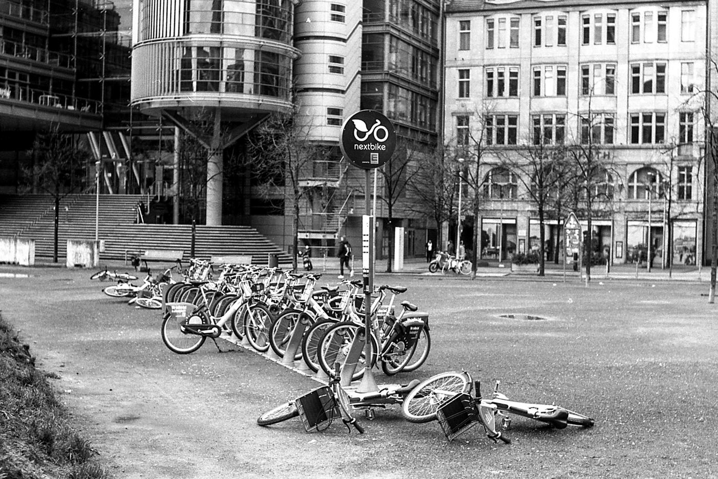 nach einem sturm im februar sind fahrräder und roller umgekippt am potsdamer platz. besuch in sachsen mit der bahn und erste frühblüher zeigen sich im garten. eine wanderung um den sbhf wollankstraße.