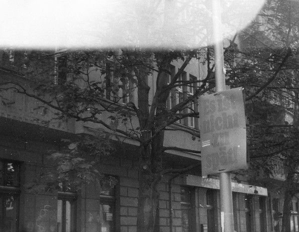 spaziergang durch pankreich (friedhof, bürgerpark) mit dem 30 jahre alten Svema FN64 (belichtet bei ISO 25). das alter hat seine spuren hinterlassen und ich habe ihn wahrscheinlich falschrum eingespult, sodass er von hinten belichtet wurde.