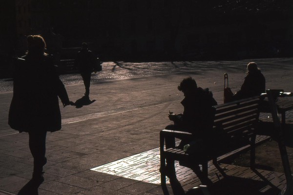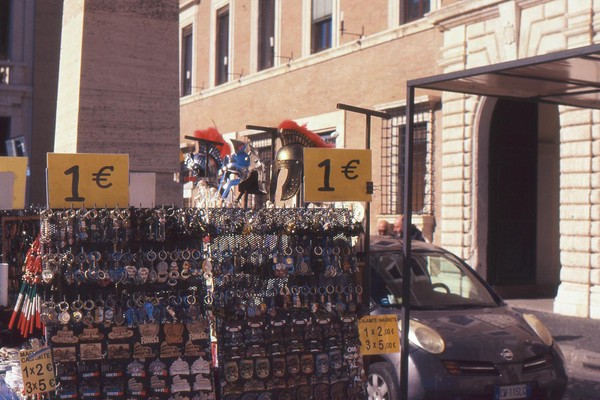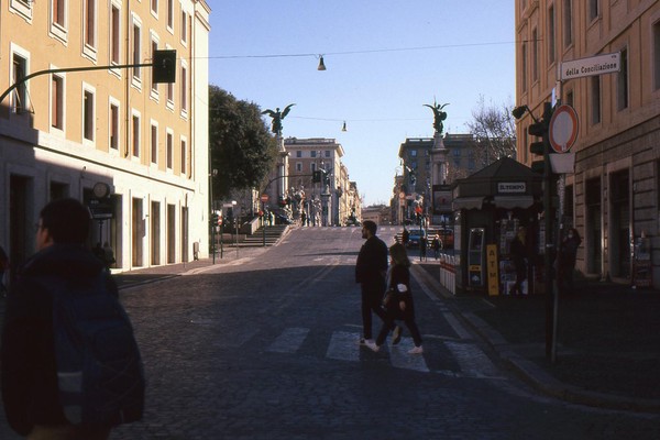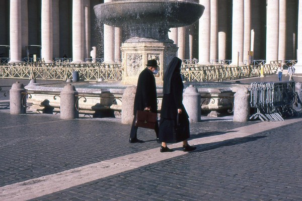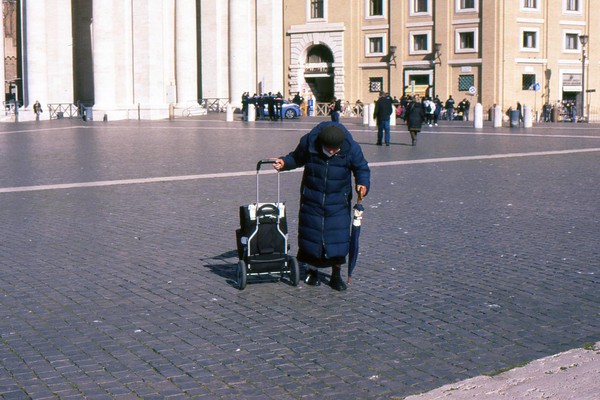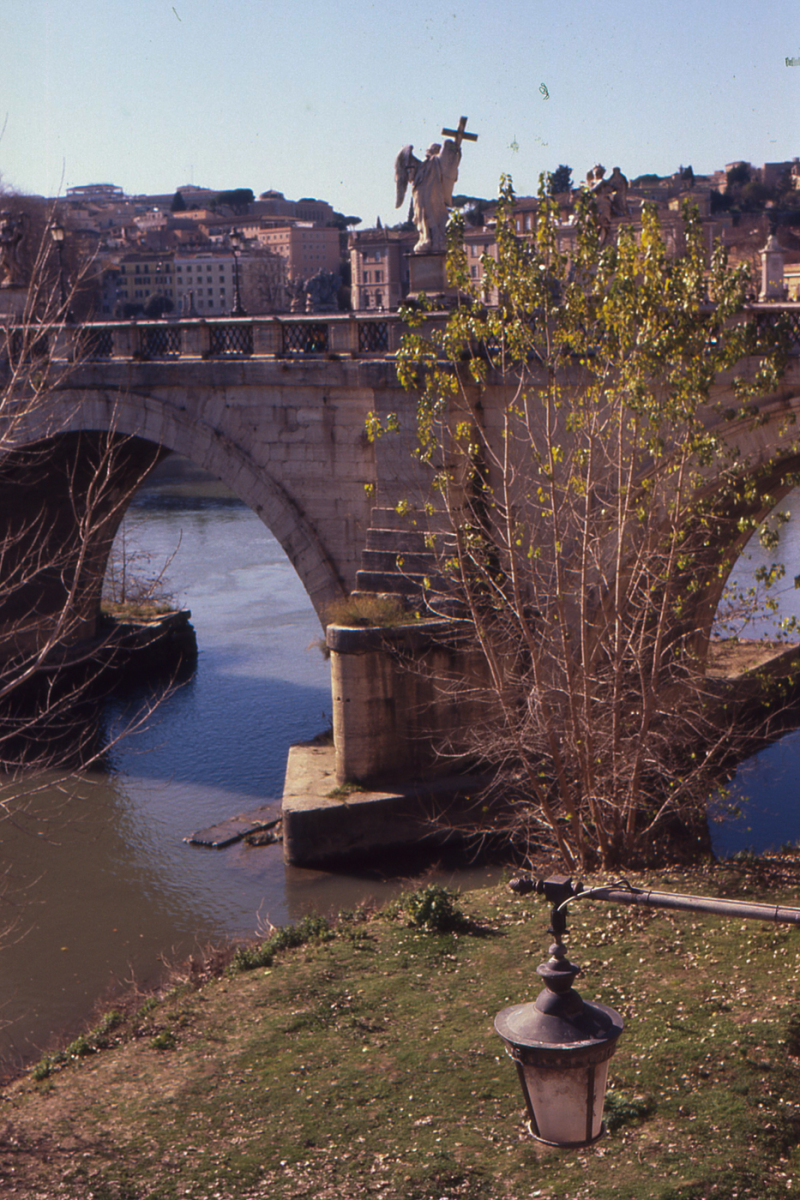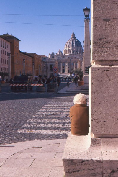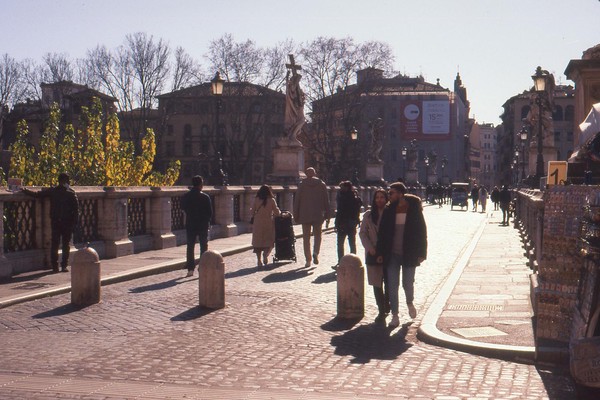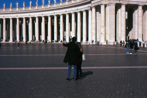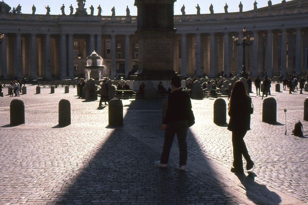zweiter tag in rom, die sonne wirft harte schatten, der überlagerte diafilm liefert ordentliche ergebnisse. besuch beim vatikan, statuen, stadtansichten, römer. überall polizei und carabinieri wegen terror sicherlich. es herrscht noch maskenpflicht in den straßen und den läden.