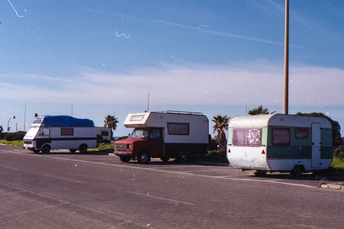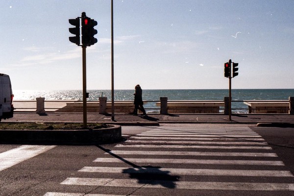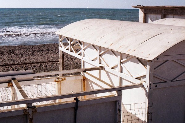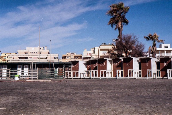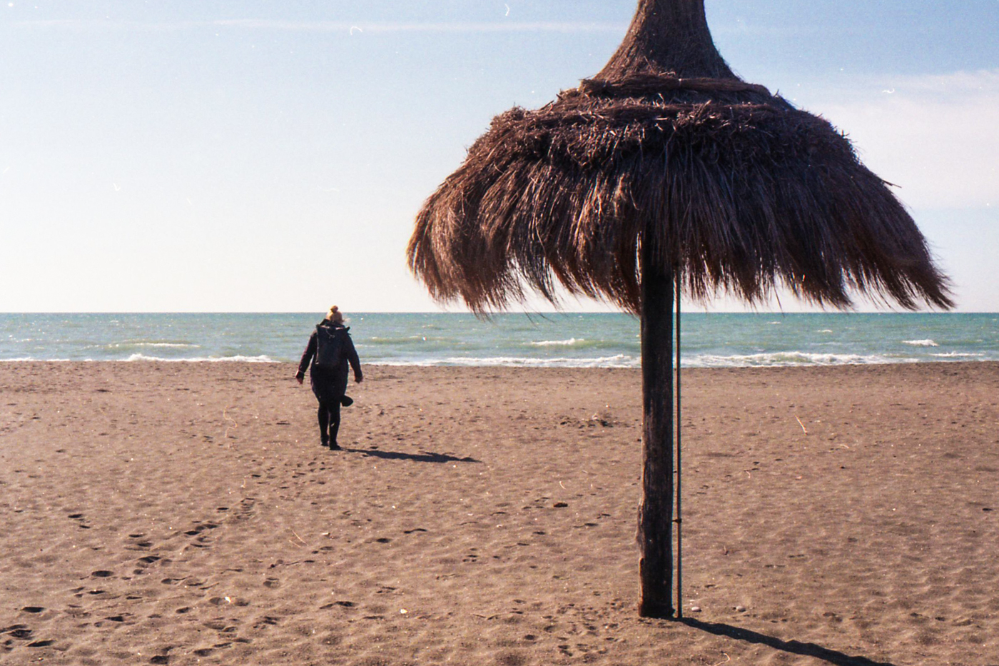 besuch in ostia, dem strand roms. im februar wochentags ist der strand leer, nur vereinzelt treffen wir menschen. schwarzer sand, bier an der strandbar, das gesicht glüht.