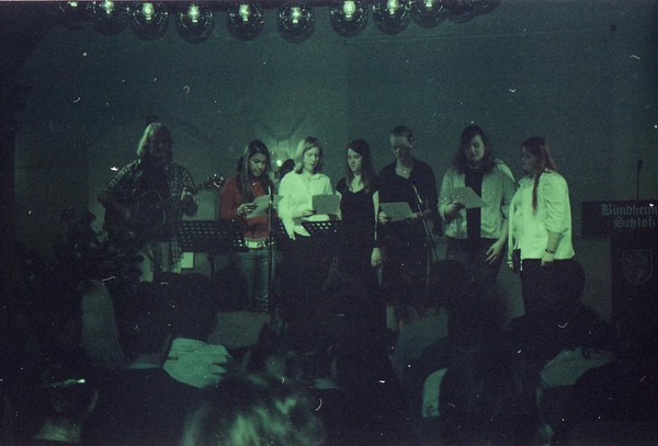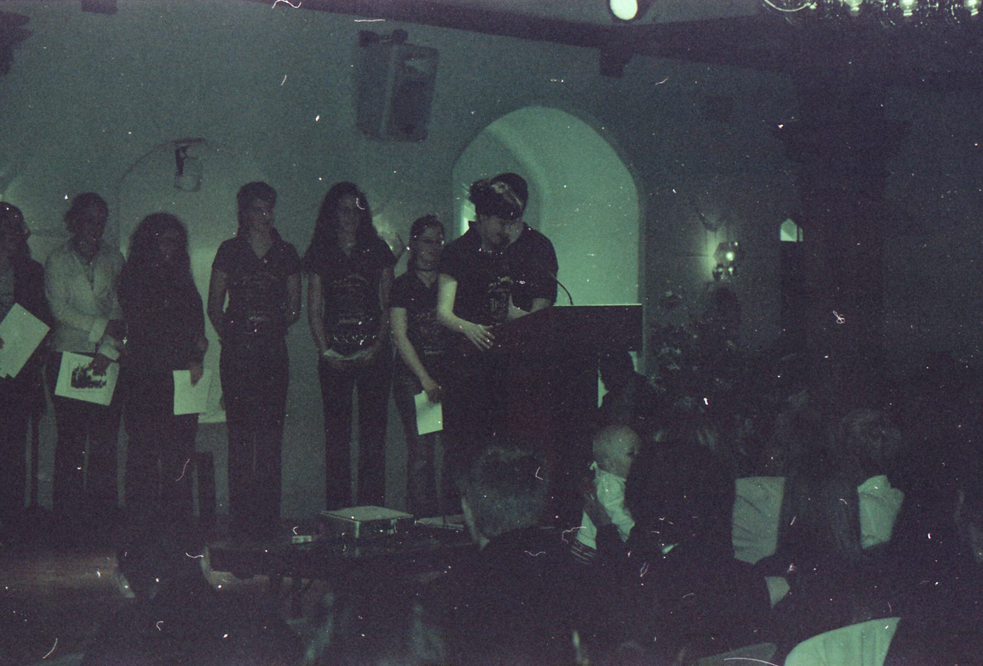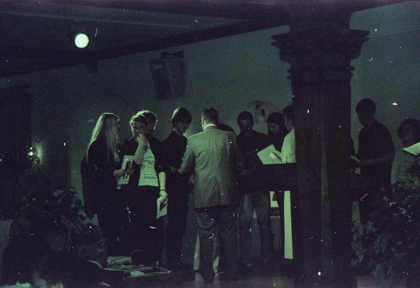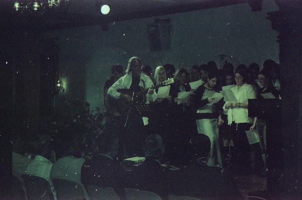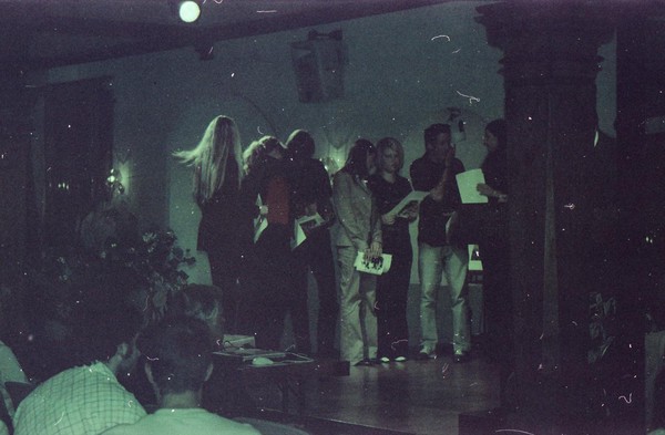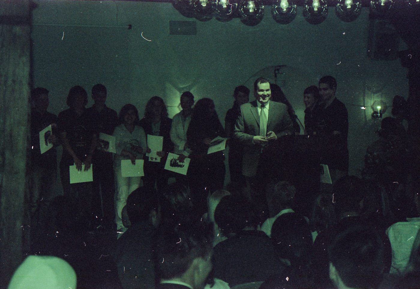 in der gebraucht erworbenen kamera steckte noch ein film, nach der entwicklung sieht man, dass er schon sehr lange da drin steckte. wir sehen jugendliche, die in einem dunklen raum offiziell gefeiert werden, konfirmation oder firmung, da kenne ich mich nicht aus. ein stolzer vater/opa (es sind meist männer) fotografiert vom zuschauerraum, nichts spektakuläres, eher langweilig banal. und doch muss sich der unbekannte die frage gefallen lassen, warum er die bilder nie entwickelt hat? ist etwas vorgefallen? oder war es nur vergesslichkeit?
