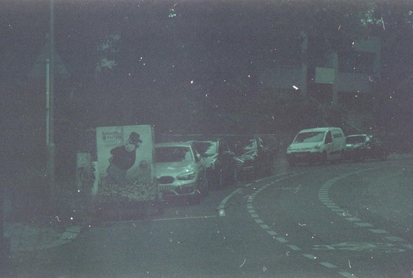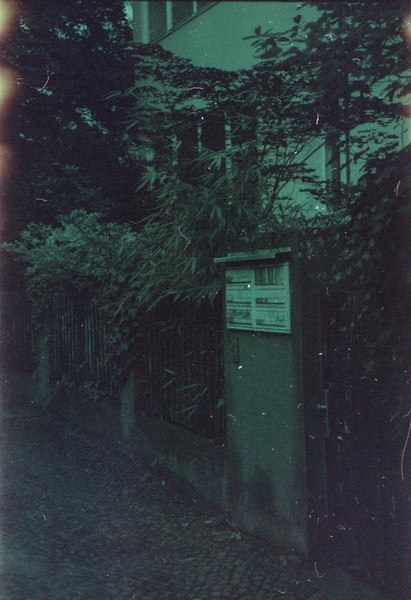 am ende der rolle noch ein paar bilder von mir, mit starkem lichteinfall. offenbar wurde die kamera zwischendurch mal aufgemacht, was bei diesem modell nicht so dramatisch ist, spult es doch am anfang den film einmal komplett auf, die belichteten bilder kommen in die patrone.
