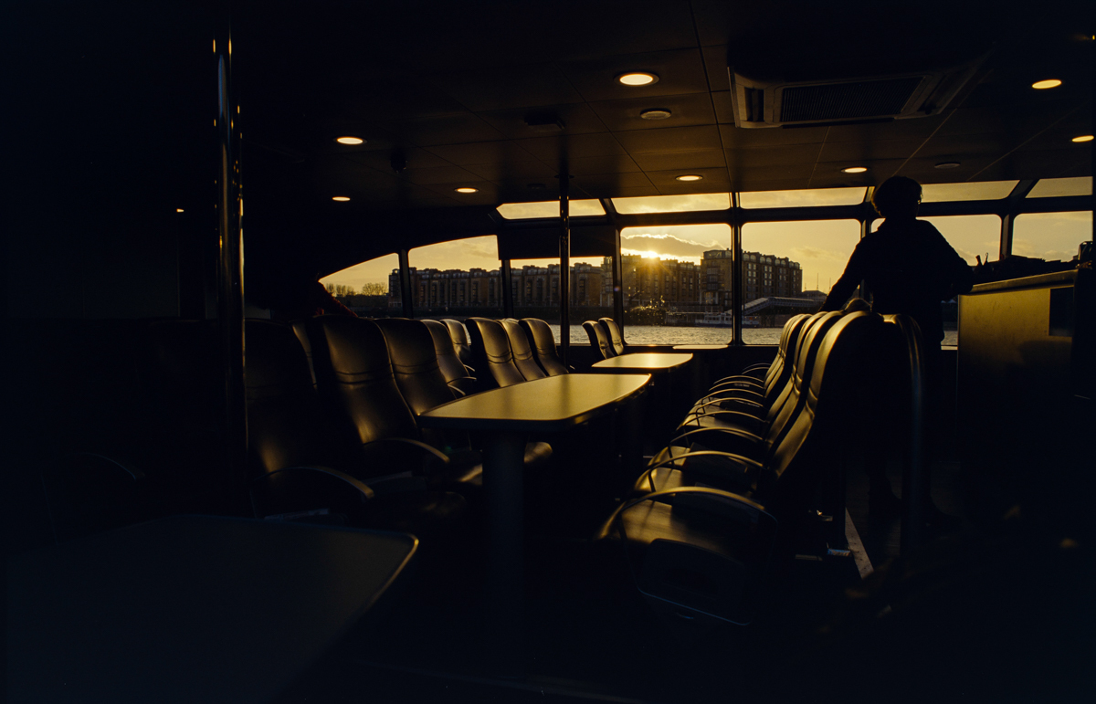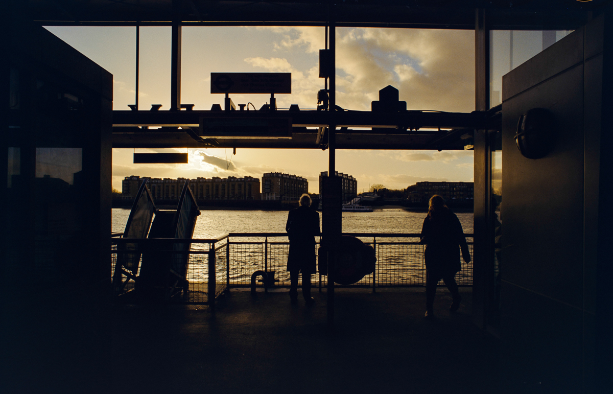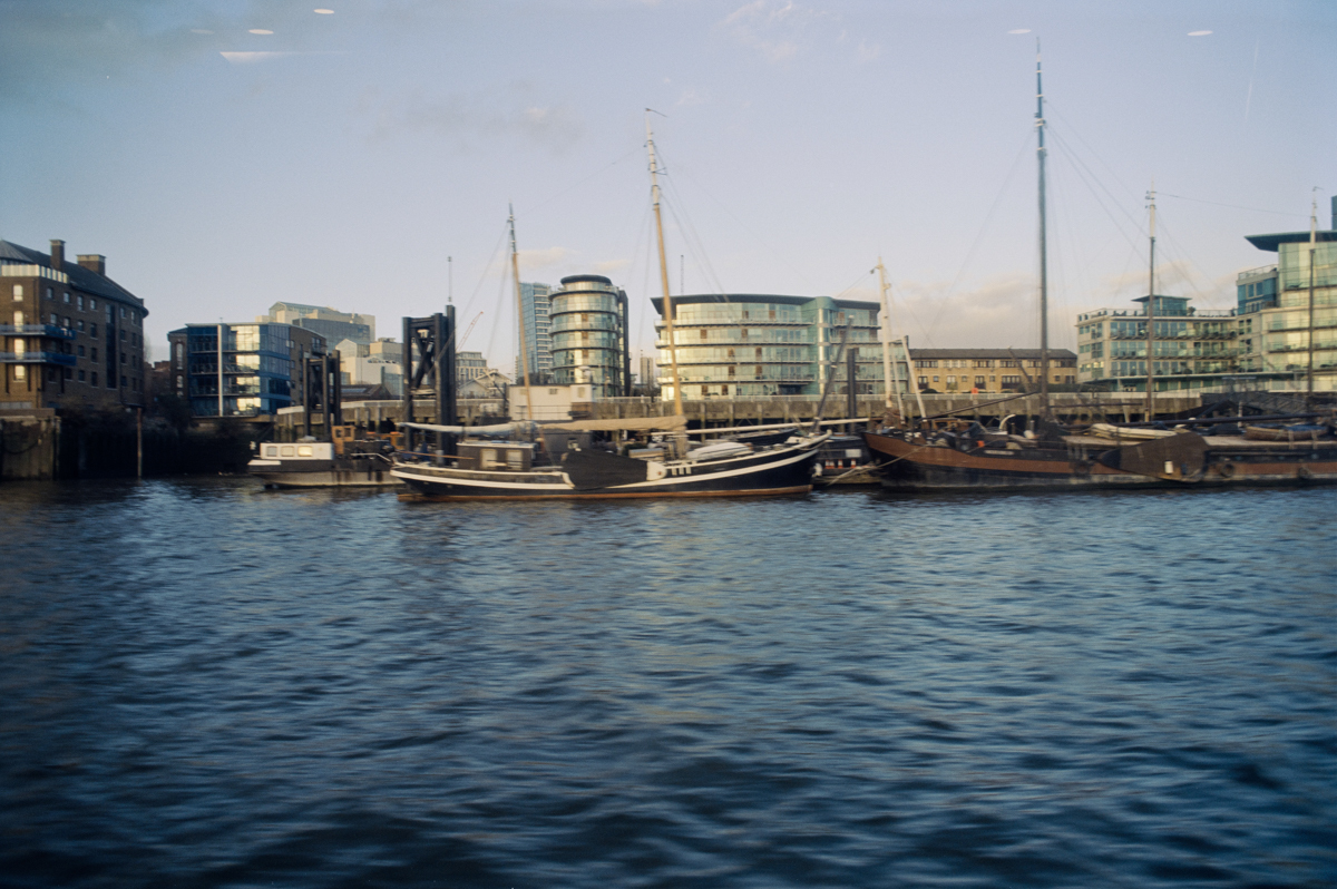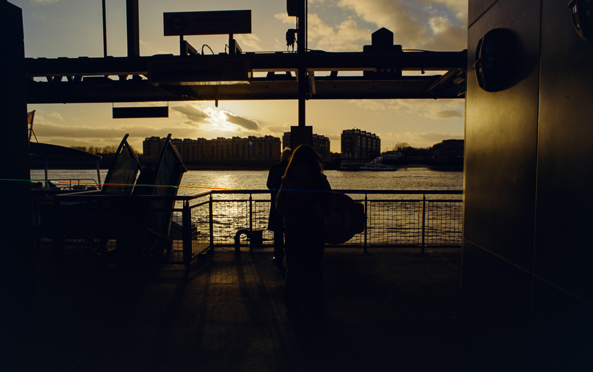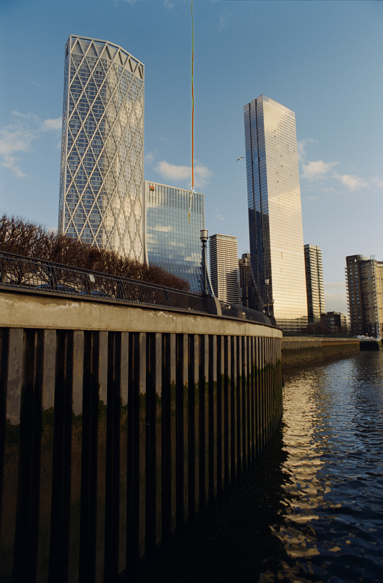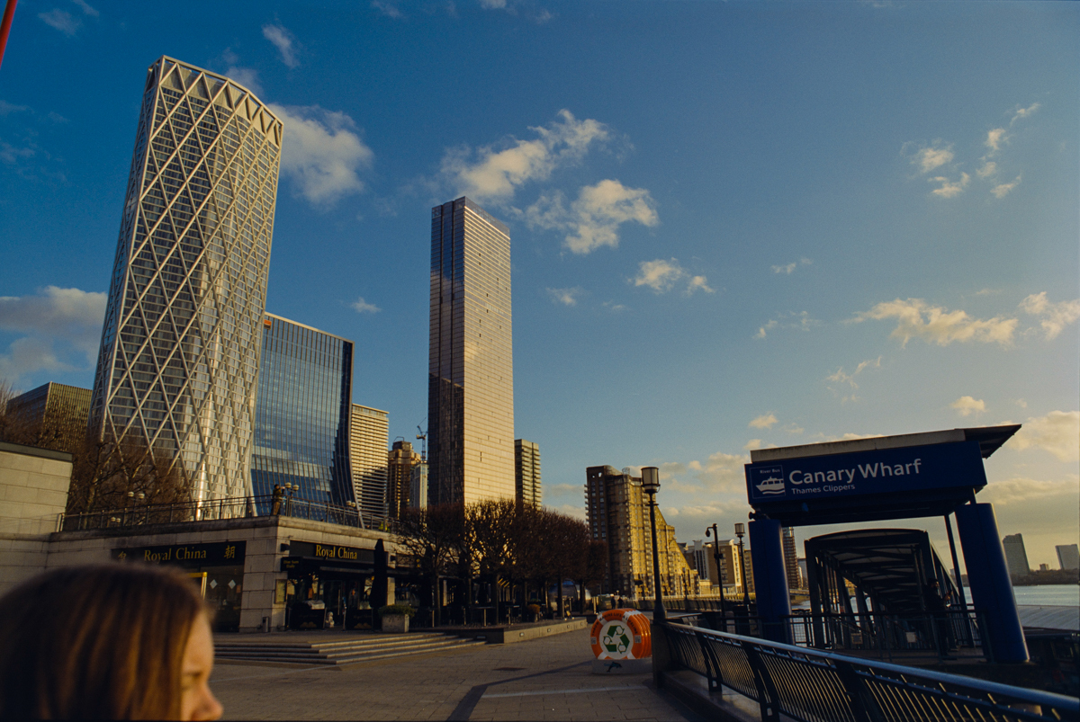 wir laufen durch den Greenwich foot tunnel, fahren mit dem bus nach Canary Wharf - einem viertel mit hochhäusern. und dann auf der themse wieder zurück, die februarsonne geht langsam unter.