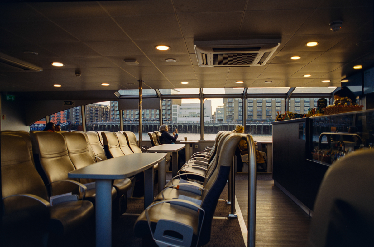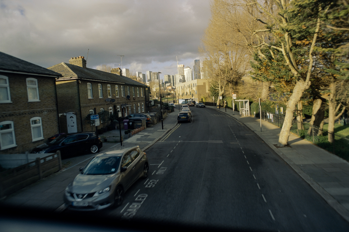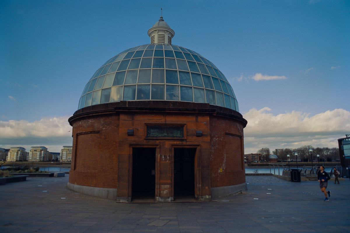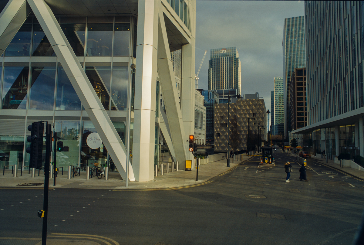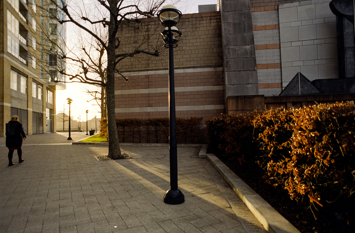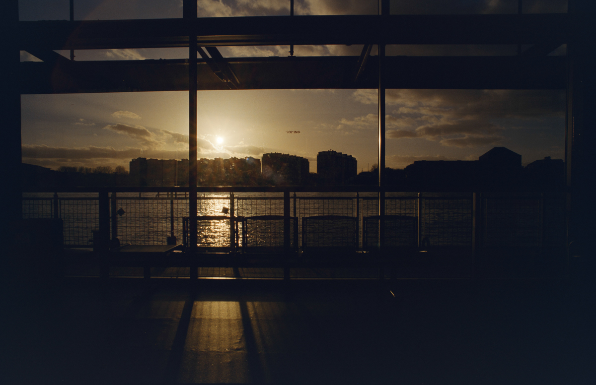 wir laufen durch den Greenwich foot tunnel, fahren mit dem bus nach Canary Wharf - einem viertel mit hochhäusern. und dann auf der themse wieder zurück, die februarsonne geht langsam unter.