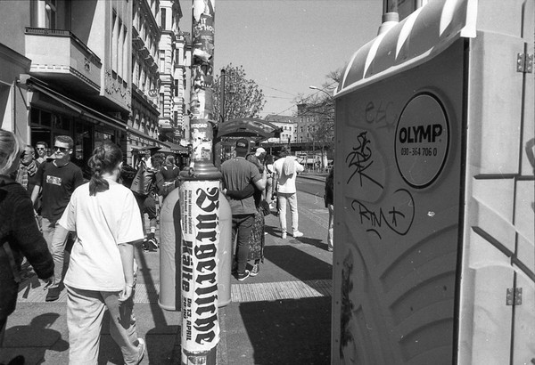 000202 - 04/23 Jul 16, 2023 📷 Nikon FA 🎞️ Agfa APX 100 🥫 Kodak HC-110 1+47 10min 💻 Epson Perfection V330 Photo spaziergang durch berlin, mitte, prenzlaer berg, kreuzberg. 📂 35mm berlin 🏷️ berlin berlin-mitte filmisnotdead flohmarkt kreuzberg mauerpark prenzlauer-berg raw-gelaende
