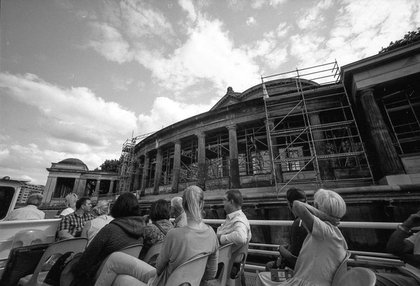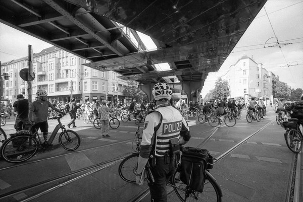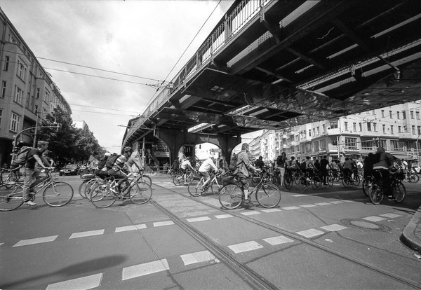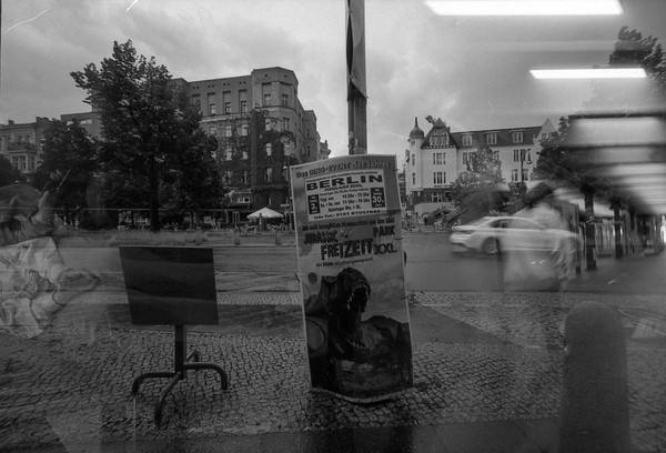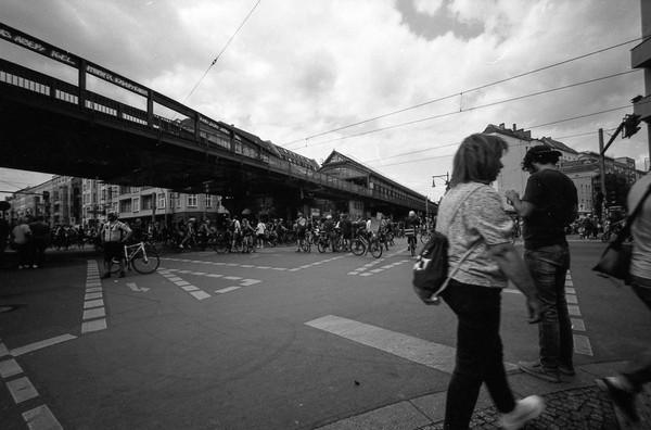 flohmarkt im mauerpark, die fahrraddemo am 2. juli, eine schiffsfahrt über die spree. wilde doppelbelichtungen (film in der kamera zurück gespult).