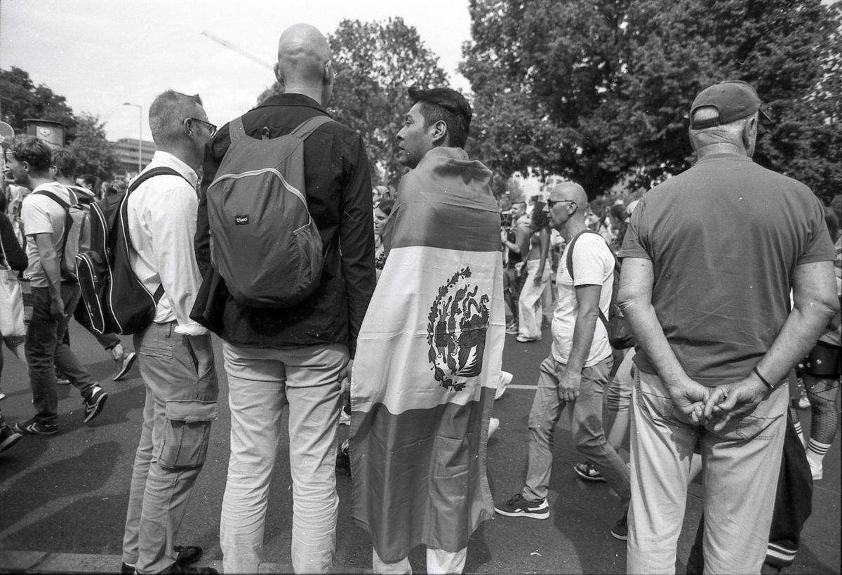 000219 - 07/23 Jul 23, 2023 📷 Nikon FA 🎞️ FOMA Fomapan 100 🥫 Kodak HC-110 1+63 10min 💻 Epson Perfection V330 Photo csd gestern (Be their voice - and ours! Für mehr Empathie und Solidarität!) und tempelhofer feld abends. 📂 35mm berlin 🏷️ berlin christopher-street-day csd demo gay-pride lgbt parade tempelhofer-feld