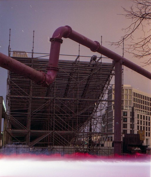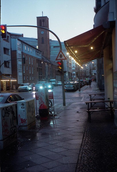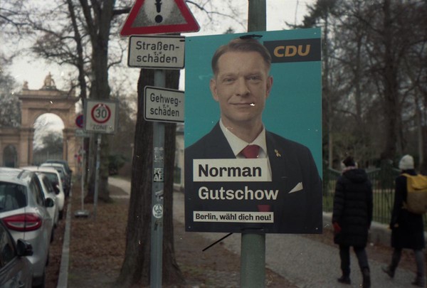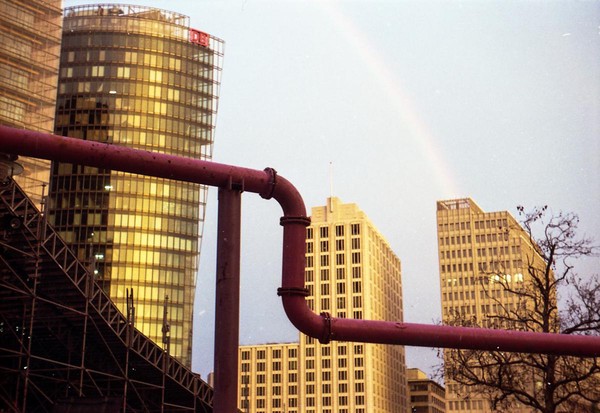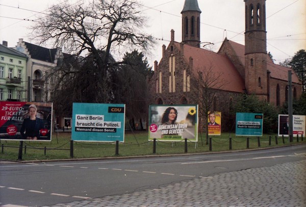 sonnenaufgang und regenbogen am portsdamer platz. spaziergang durch den schloßpark pankow. im januar gabs noch wahlplakate (wiederholungswahl zum berliner abgeordnetenhaus).