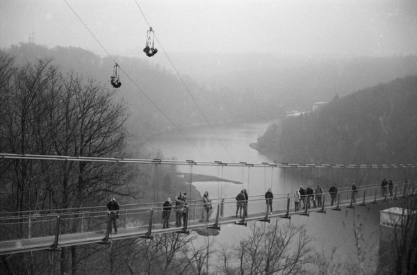 spaziergang durch bad harzburg. besuch an der rappbodetalsperre, da haben sie eine lange brücke für fußgänger gebaut ("titan rt"). plus skizzen mit der nikkormat: