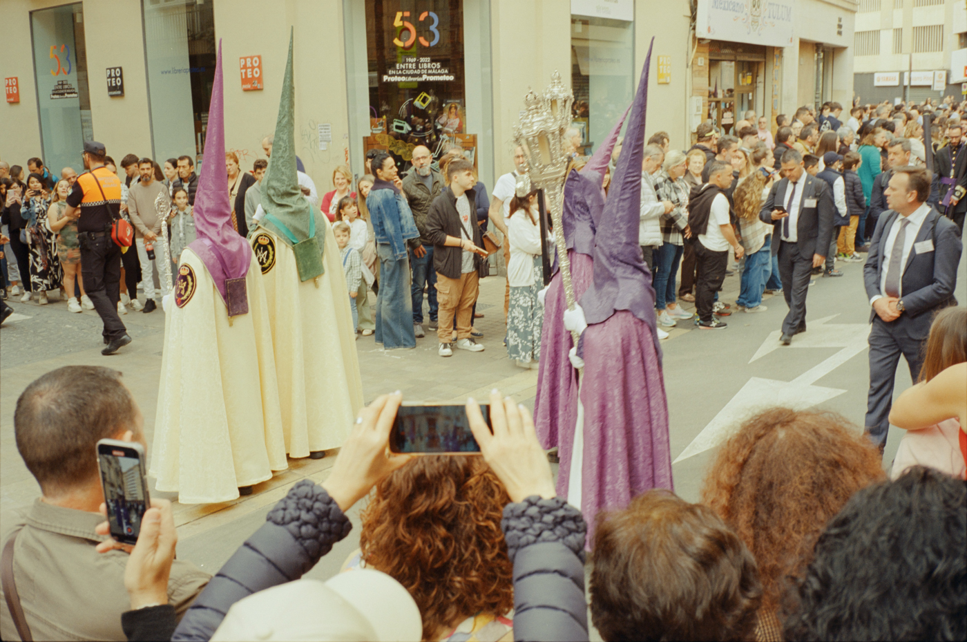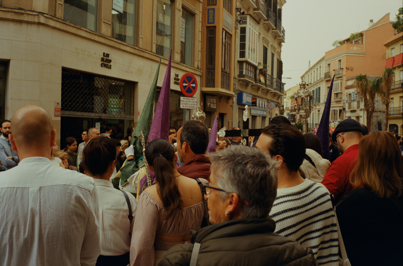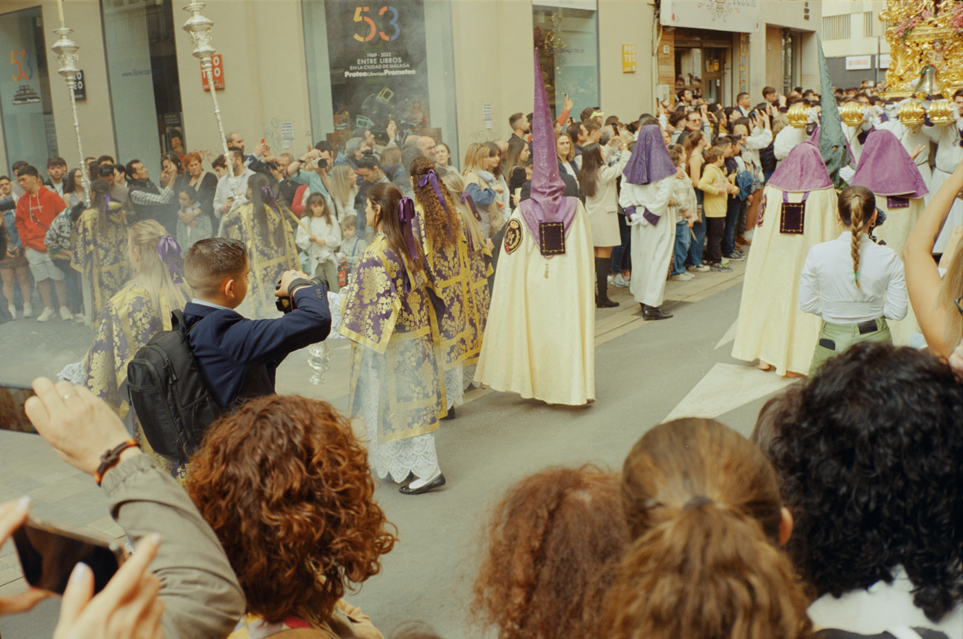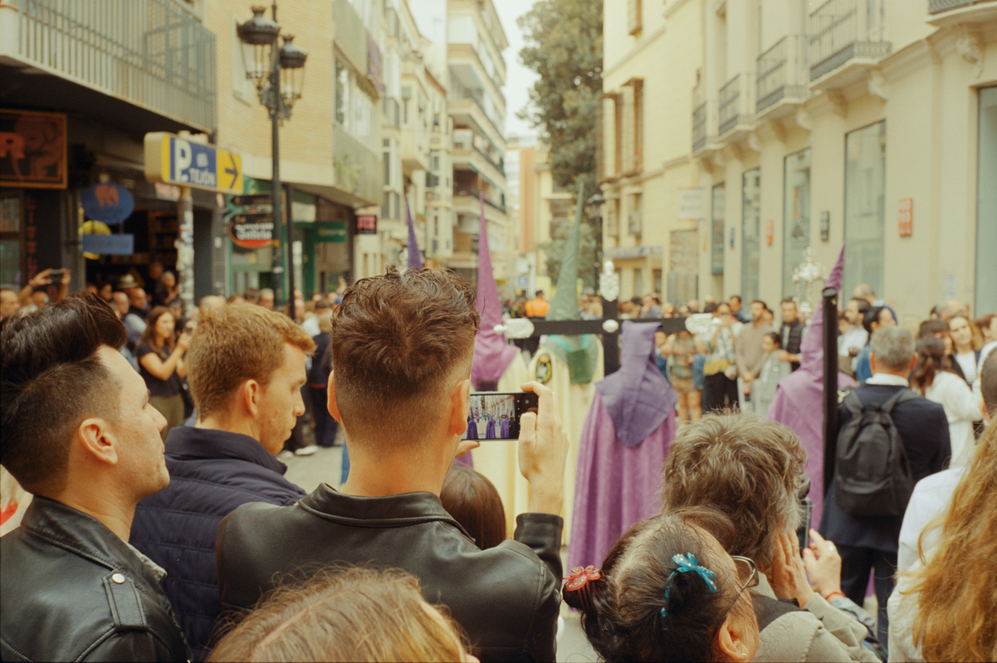 000264 - 03/24 – andalusien #2 May 25, 2024 📷 Leica M5 🎞️ Kodak Vision3 (Silbersalz35 250D) 🥫 ECN-2 (Silbersalz35) 💻 Silbersalz35 noch mehr semana santa in málaga. ganze familien sind da mit sack und pack und stühlen und in feinem zwirn. 📂 35mm spanien 🏷️ andalusien malaga ostern prozession religion semana-santa silbersalz35 spanien