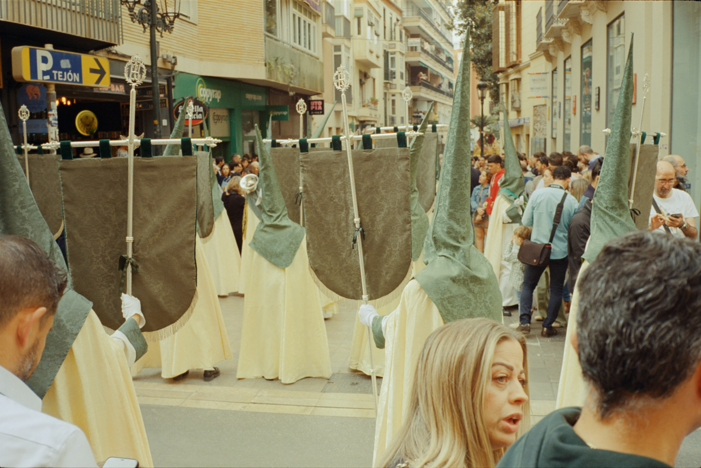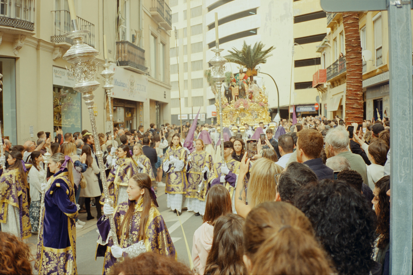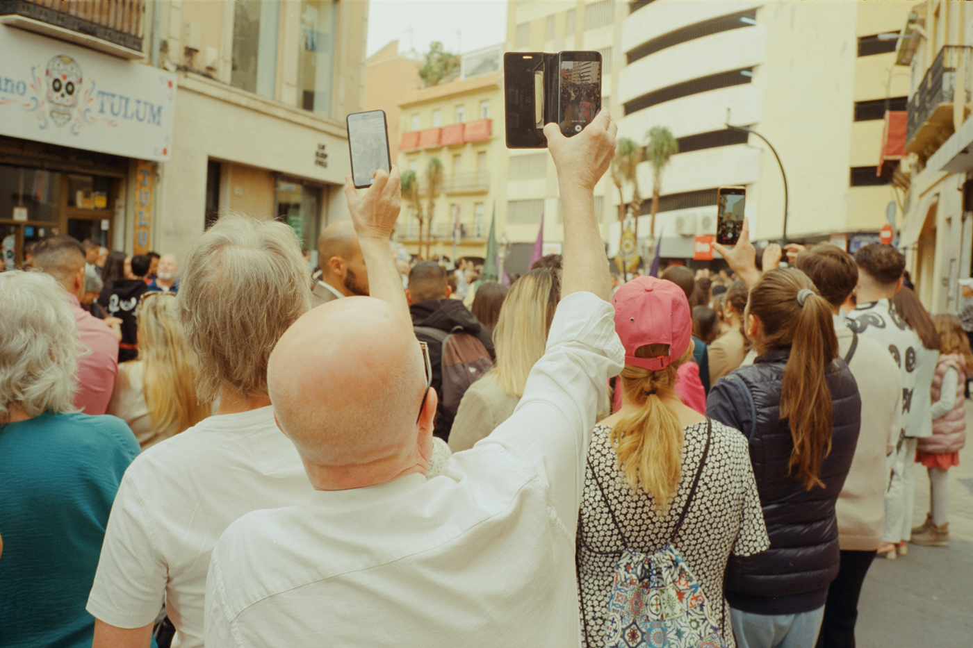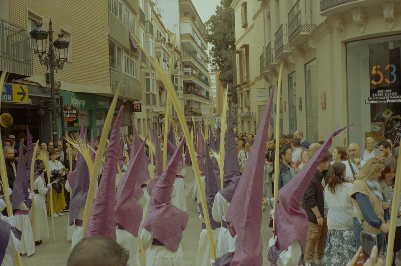 000264 - 03/24 – andalusien #2 May 25, 2024 📷 Leica M5 🎞️ Kodak Vision3 (Silbersalz35 250D) 🥫 ECN-2 (Silbersalz35) 💻 Silbersalz35 noch mehr semana santa in málaga. ganze familien sind da mit sack und pack und stühlen und in feinem zwirn. 📂 35mm spanien 🏷️ andalusien malaga ostern prozession religion semana-santa silbersalz35 spanien