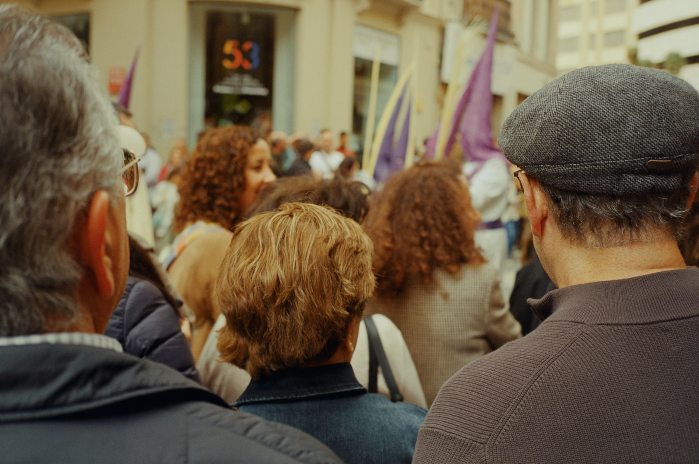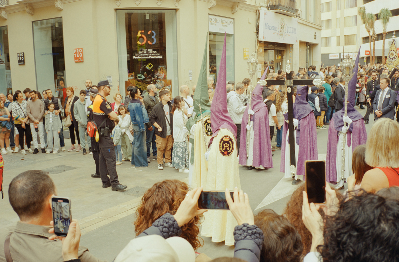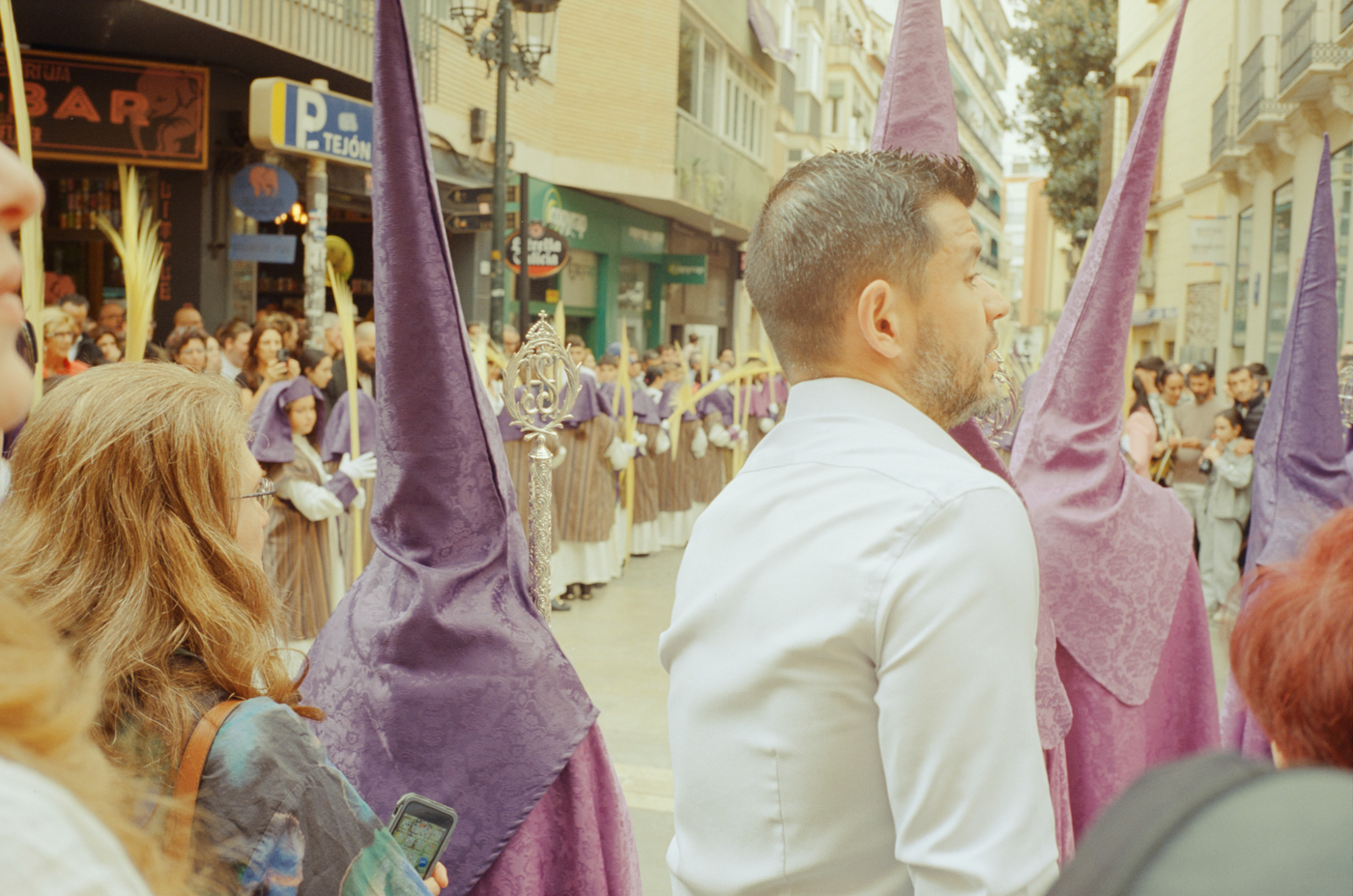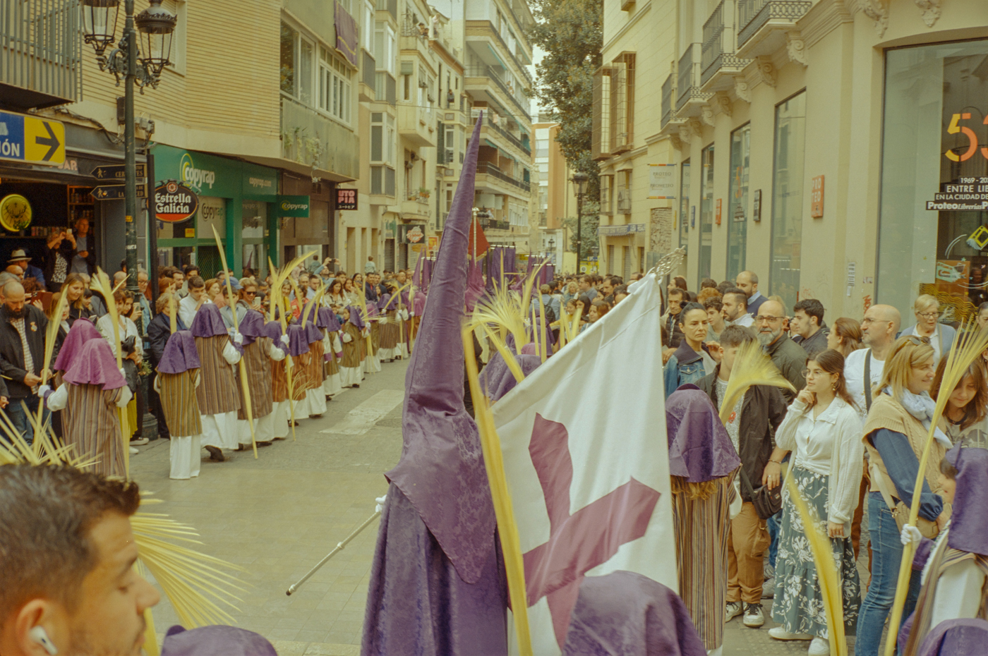 000264 - 03/24 – andalusien #2 May 25, 2024 📷 Leica M5 🎞️ Kodak Vision3 (Silbersalz35 250D) 🥫 ECN-2 (Silbersalz35) 💻 Silbersalz35 noch mehr semana santa in málaga. ganze familien sind da mit sack und pack und stühlen und in feinem zwirn. 📂 35mm spanien 🏷️ andalusien malaga ostern prozession religion semana-santa silbersalz35 spanien