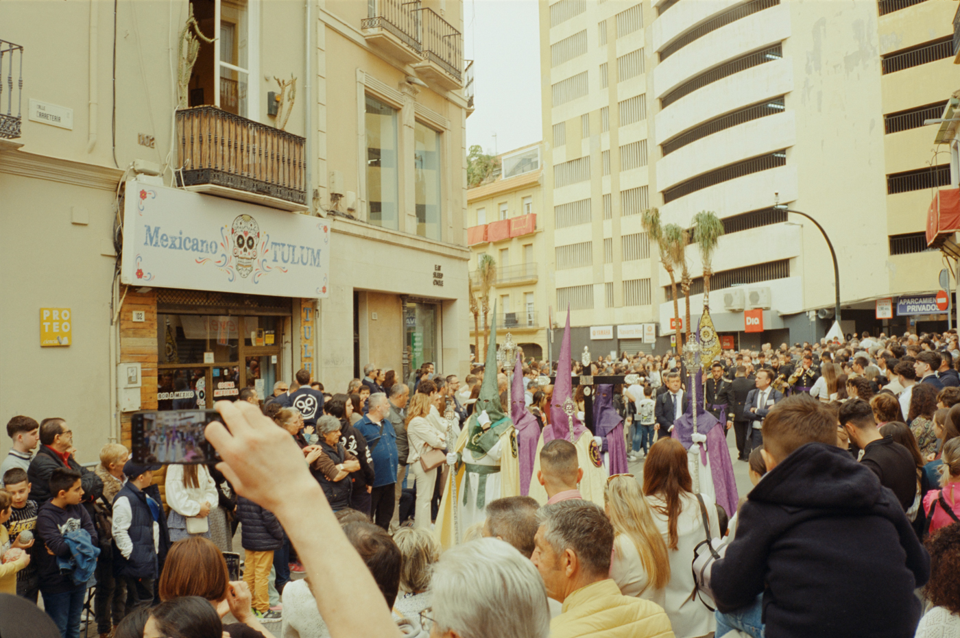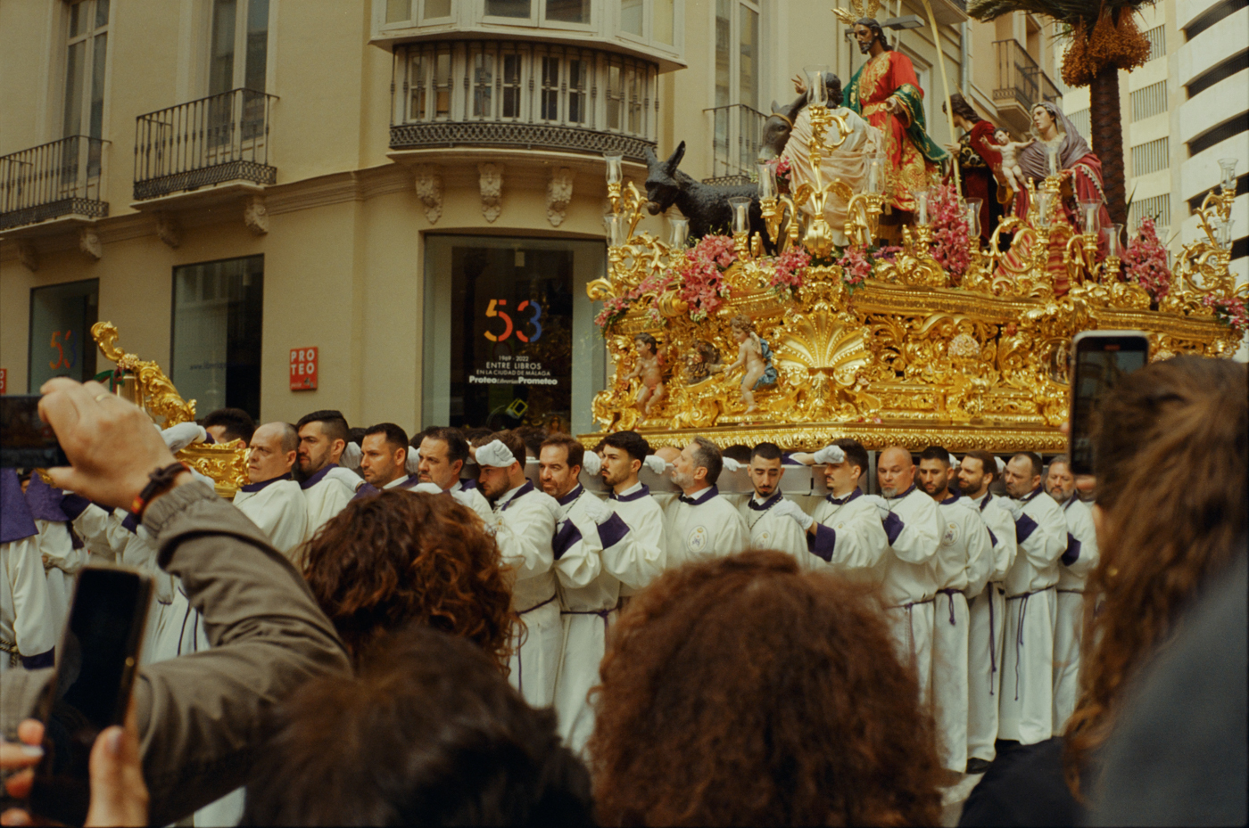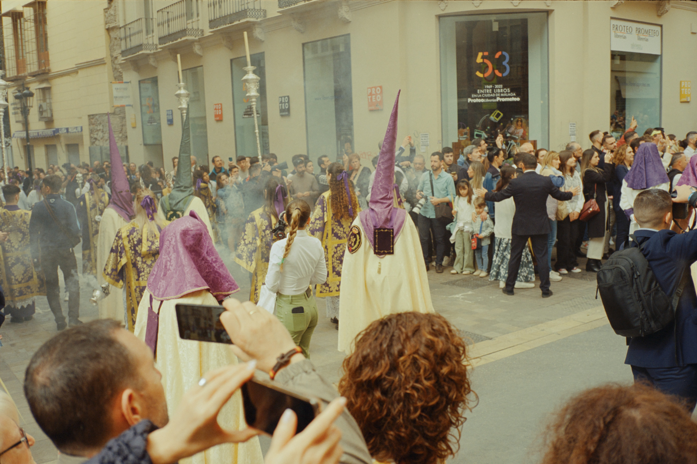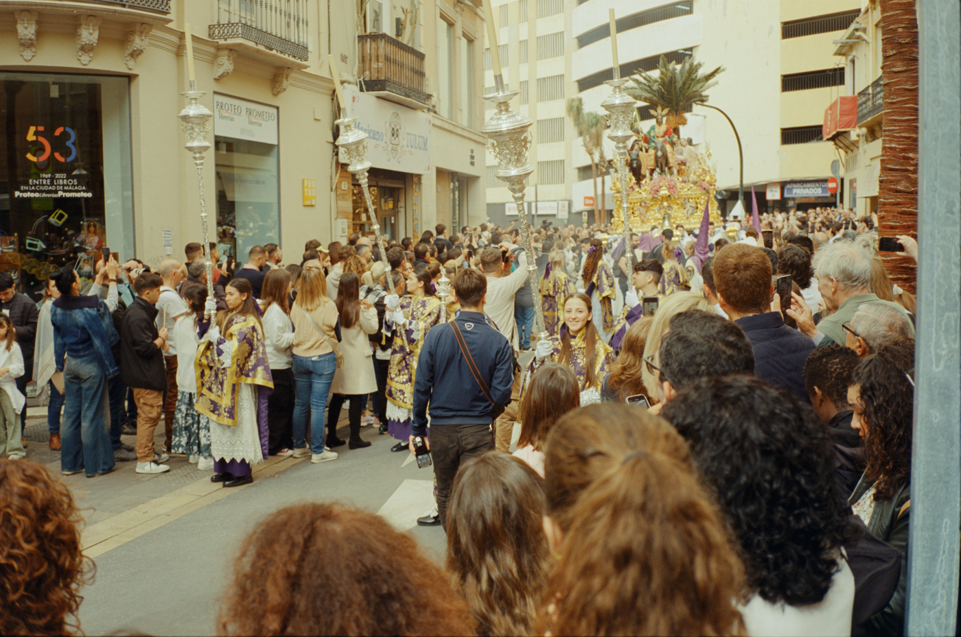 000264 - 03/24 – andalusien #2 May 25, 2024 📷 Leica M5 🎞️ Kodak Vision3 (Silbersalz35 250D) 🥫 ECN-2 (Silbersalz35) 💻 Silbersalz35 noch mehr semana santa in málaga. ganze familien sind da mit sack und pack und stühlen und in feinem zwirn. 📂 35mm spanien 🏷️ andalusien malaga ostern prozession religion semana-santa silbersalz35 spanien