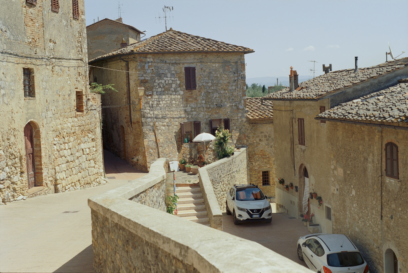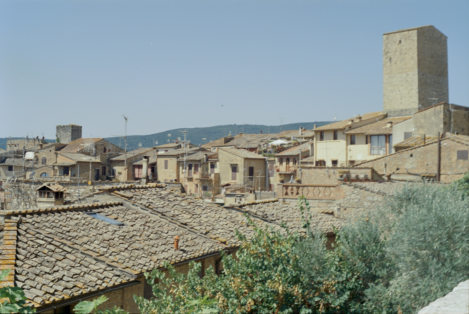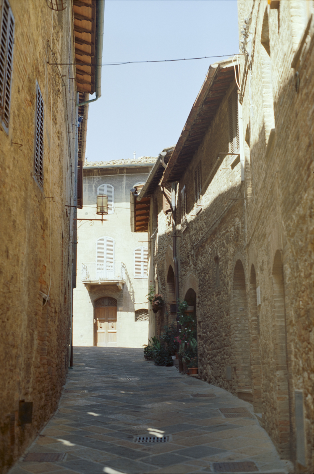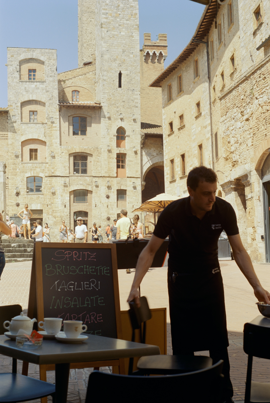 wir streunern durch San Gimignano, die sonne knallt und touristengruppen schieben sich durch die mittelalterliche stadt.