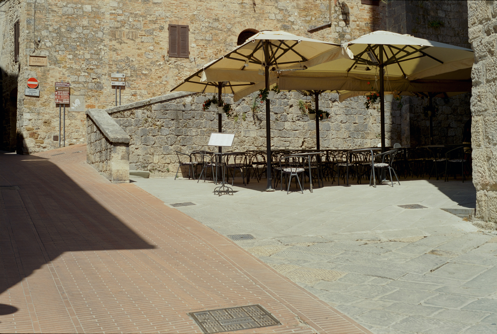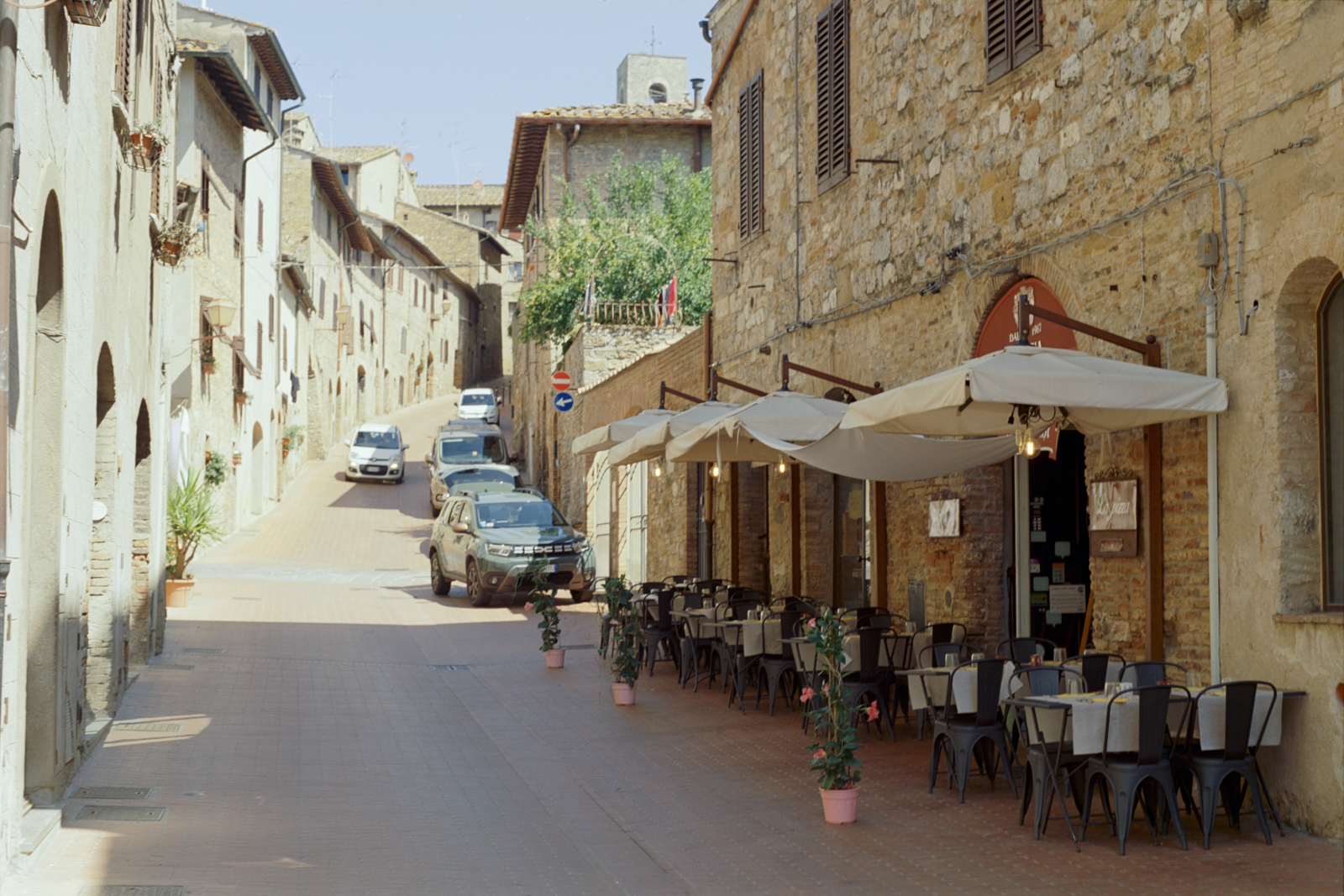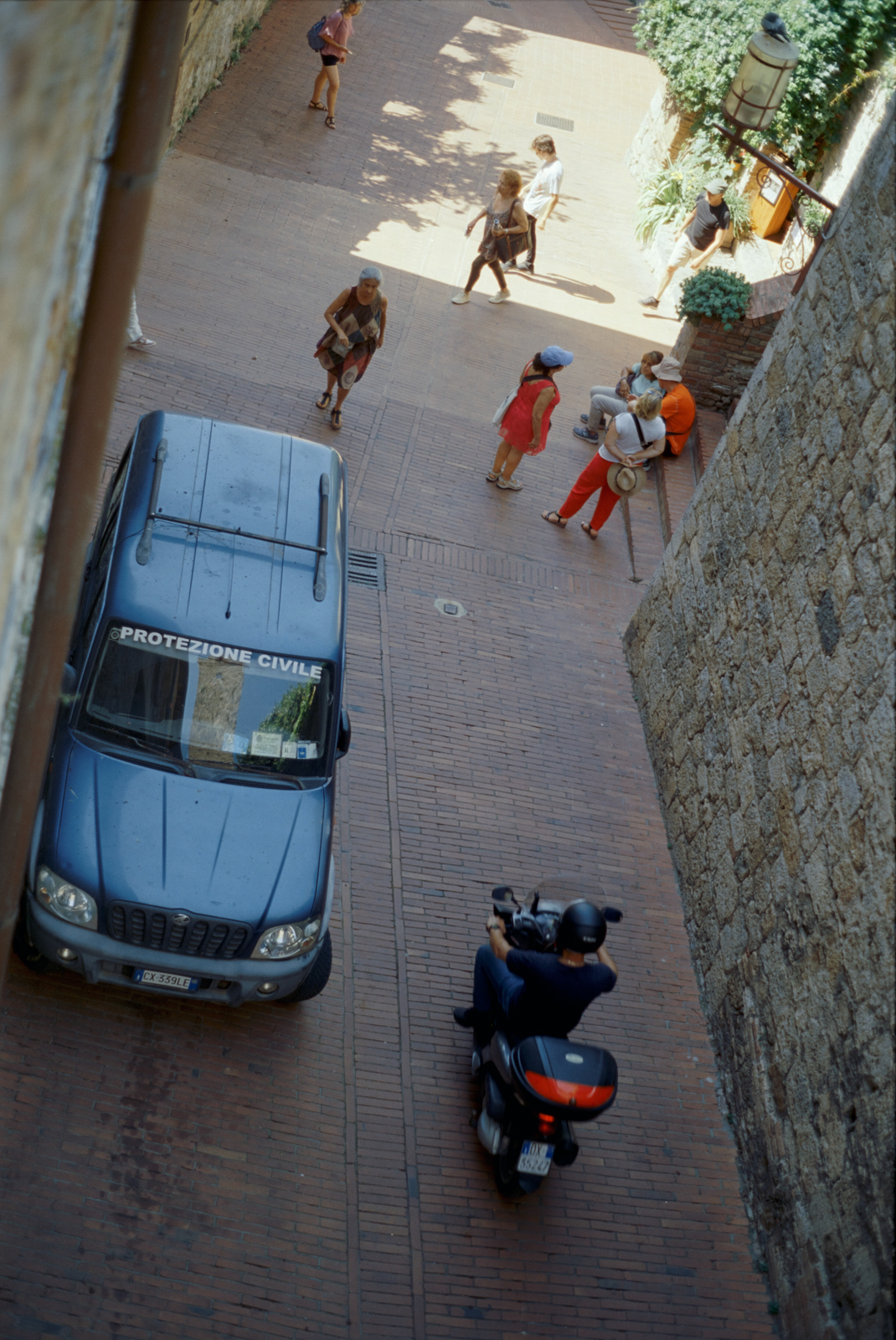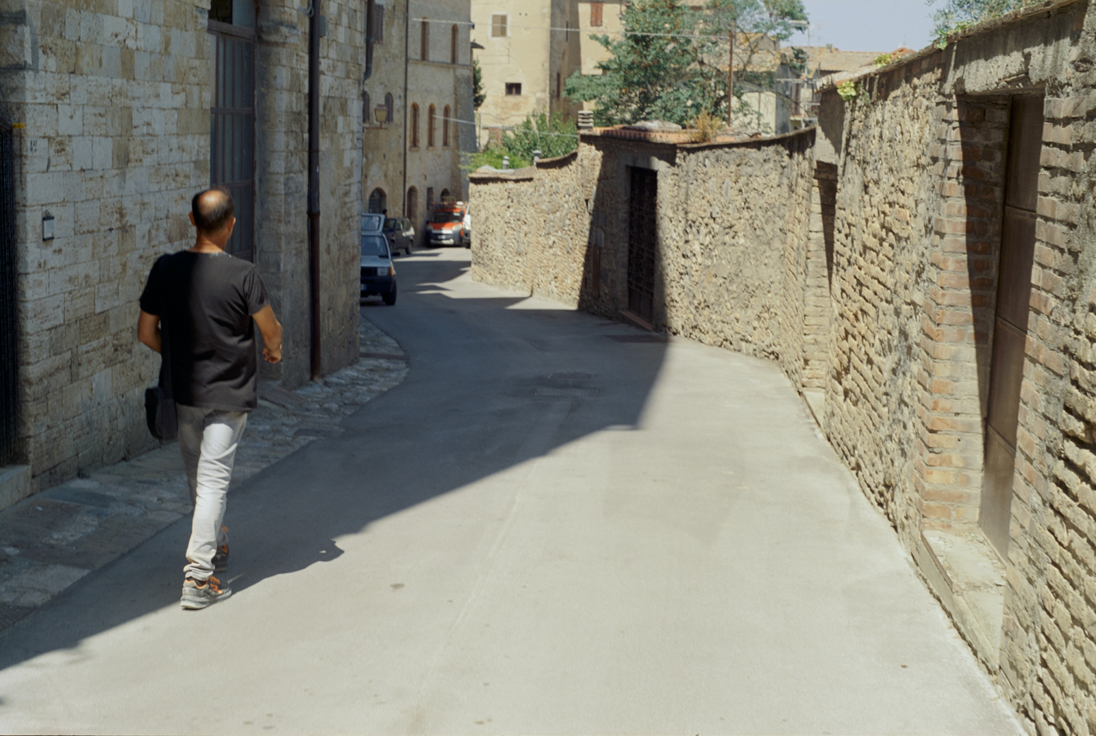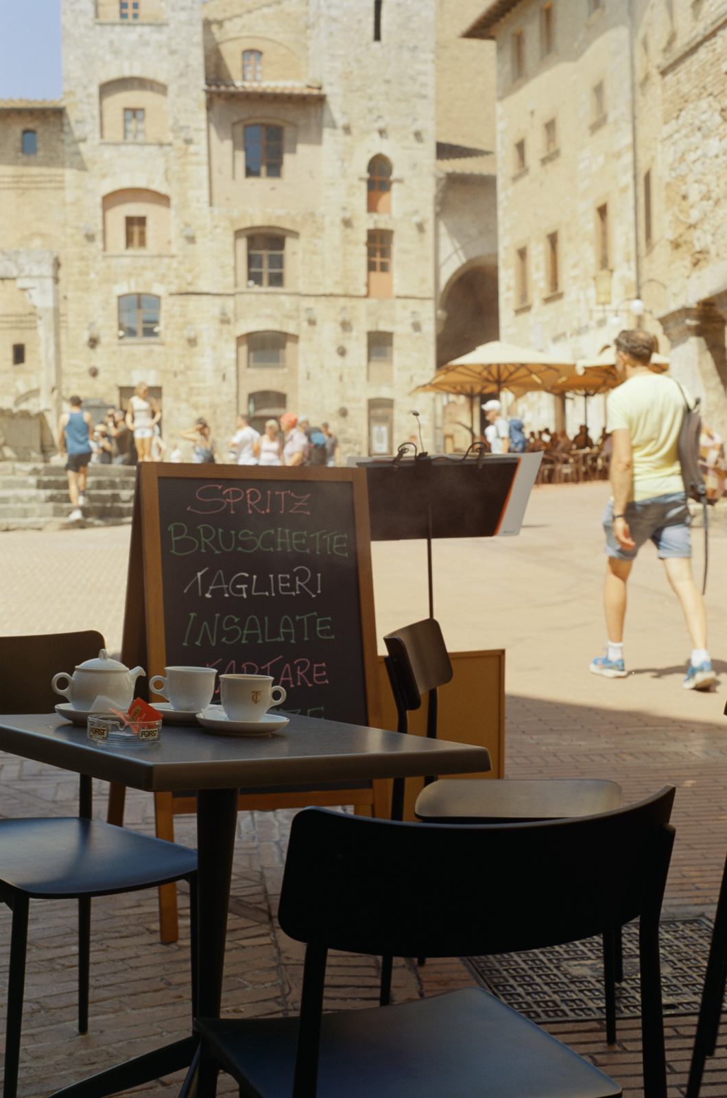 wir streunern durch San Gimignano, die sonne knallt und touristengruppen schieben sich durch die mittelalterliche stadt.