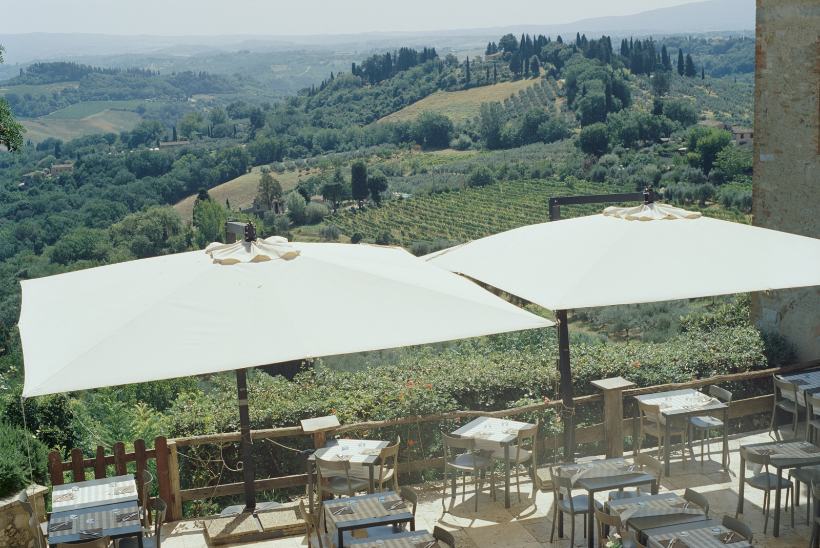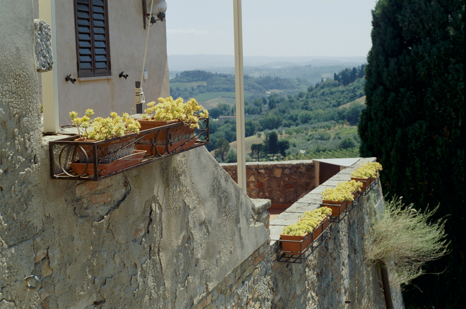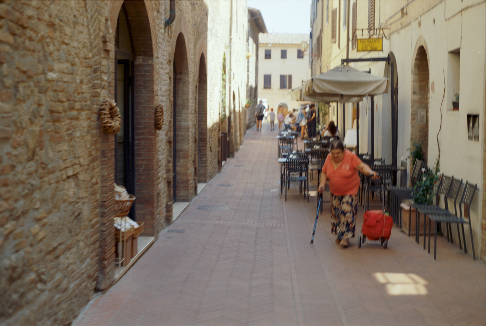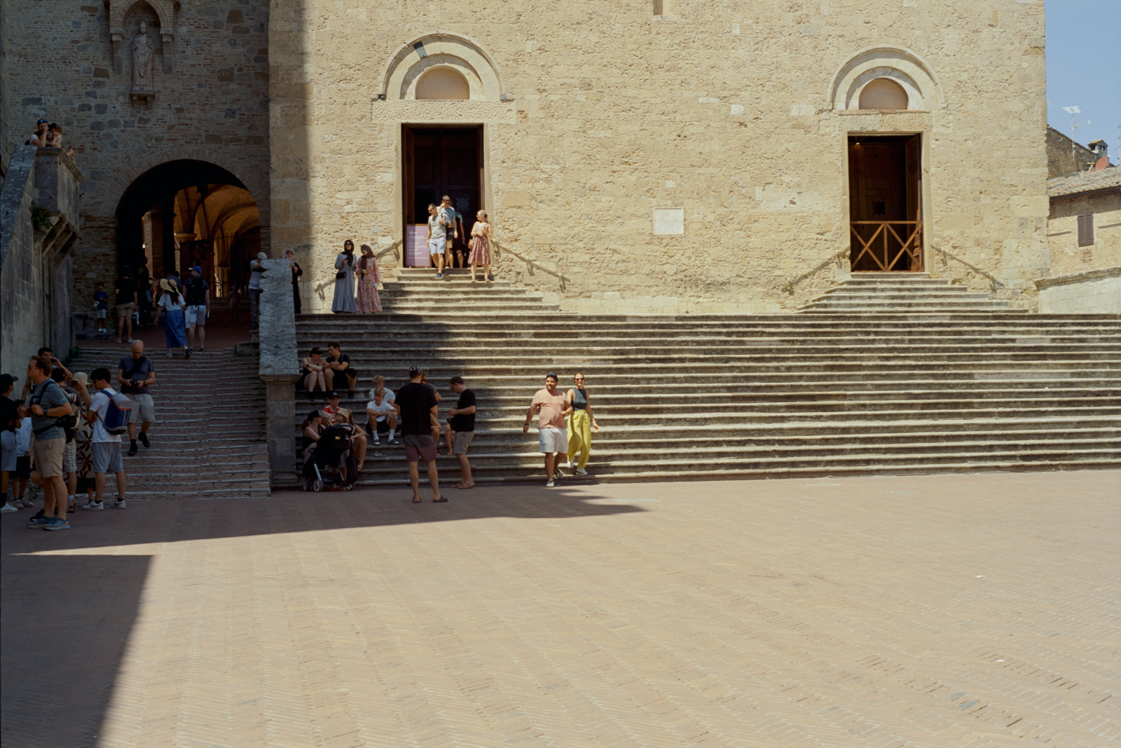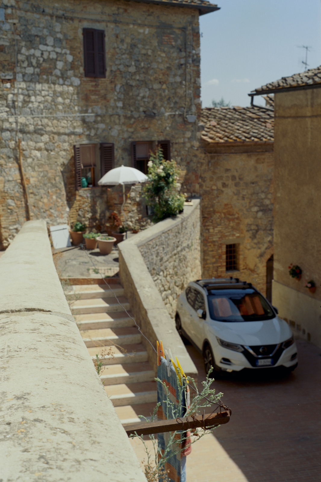 wir streunern durch San Gimignano, die sonne knallt und touristengruppen schieben sich durch die mittelalterliche stadt.