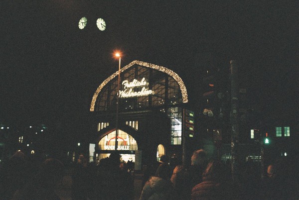 mehr hamburg, es wird langsam dunkel und der zug nach berlin fährt bald. dann weihnachtsmarkt in berlin am alex / rotem rathaus.