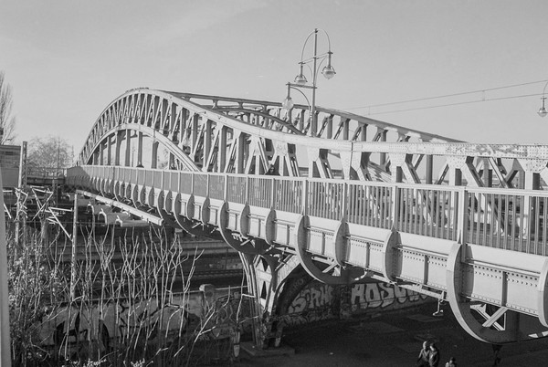 000329 - 01/25 Mar 24, 2025 📷 Leica M5 🎞️ ILFORD XP2 Super 400 🥫 safelight berlin 💻 safelight berlin spaziergang durch pankow, prenzlauer berg und wedding im januar. 📂 35mm berlin 🏷️ gesundbrunnen berlin pankow pankreich bornholmer brücke böse brücke schönhauser schwarzweiß