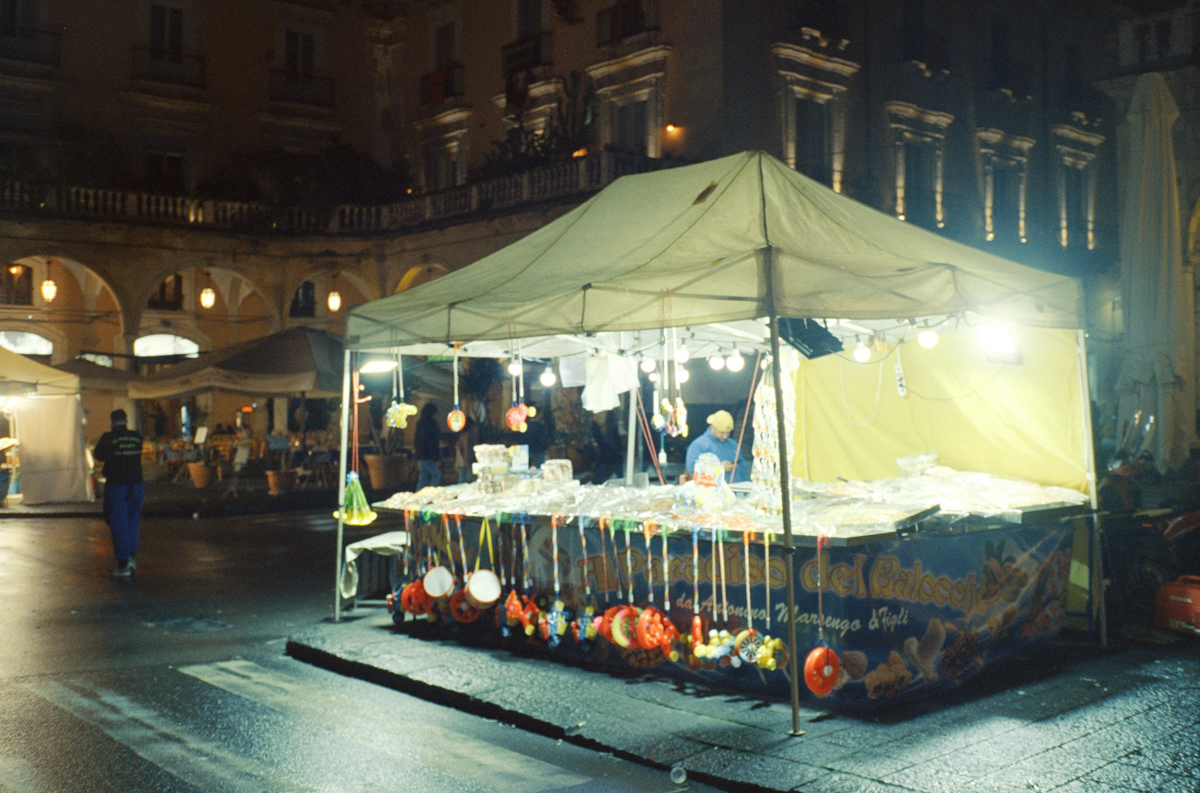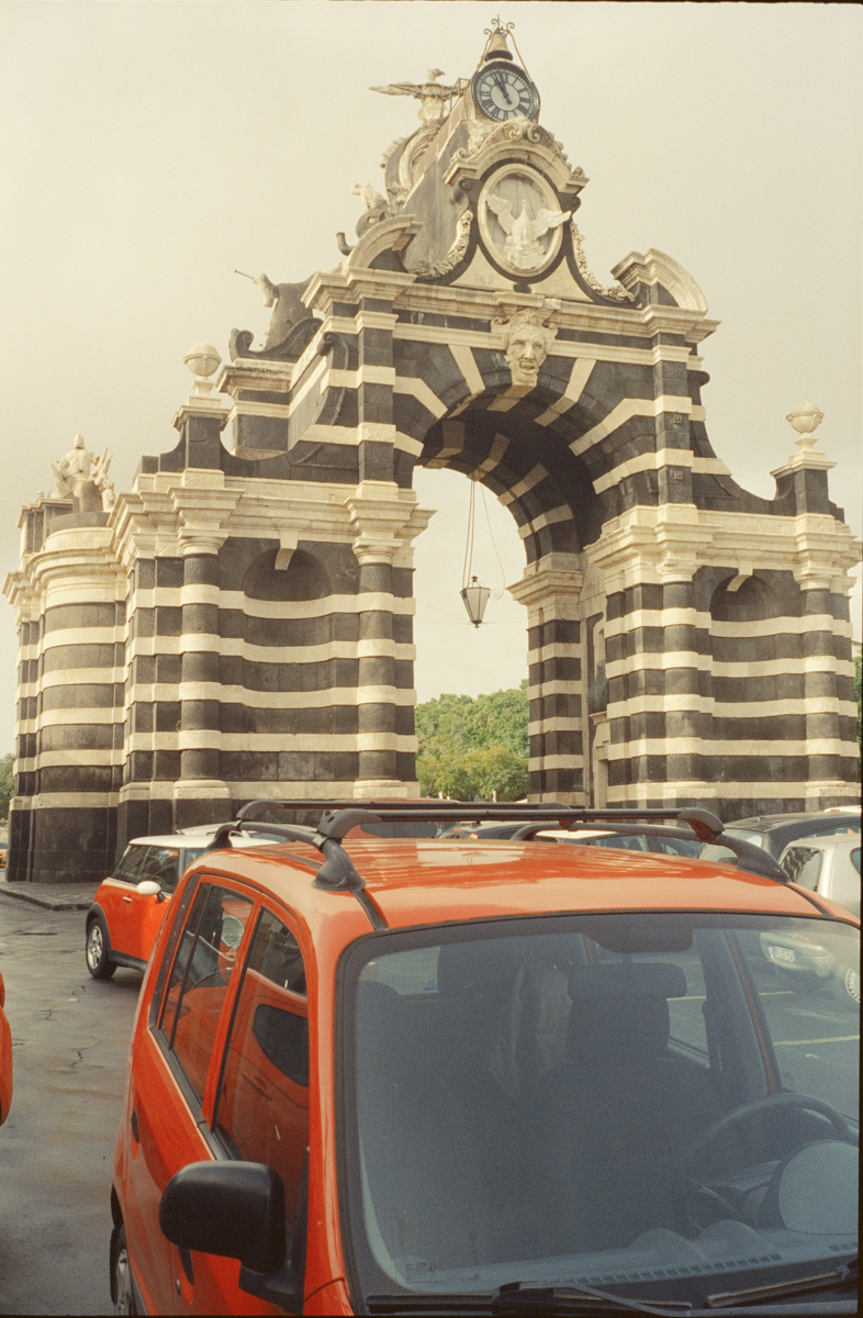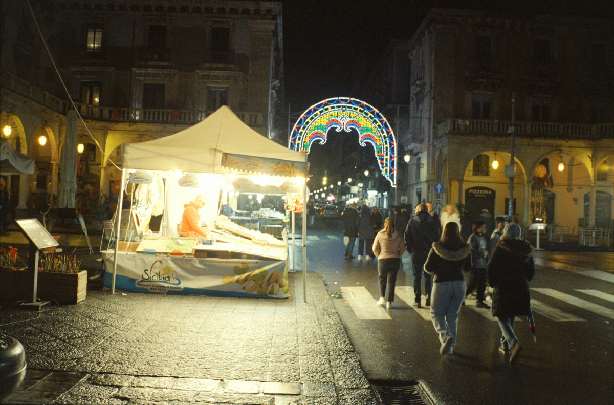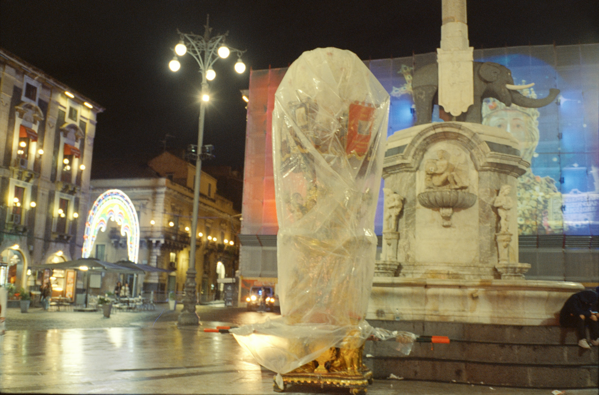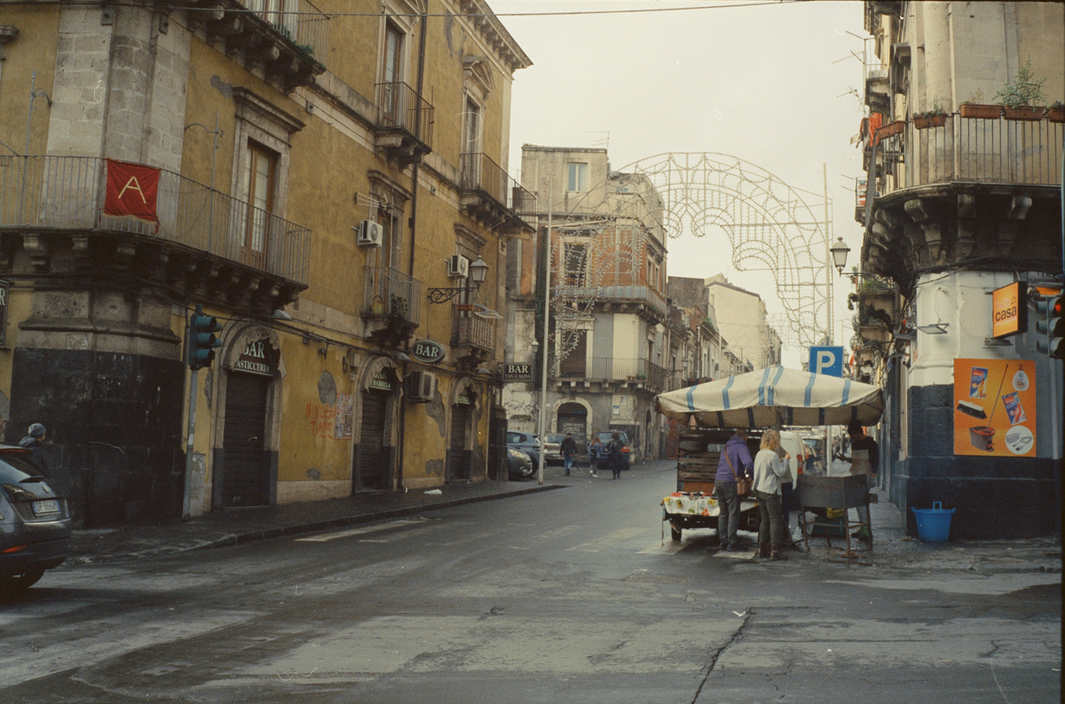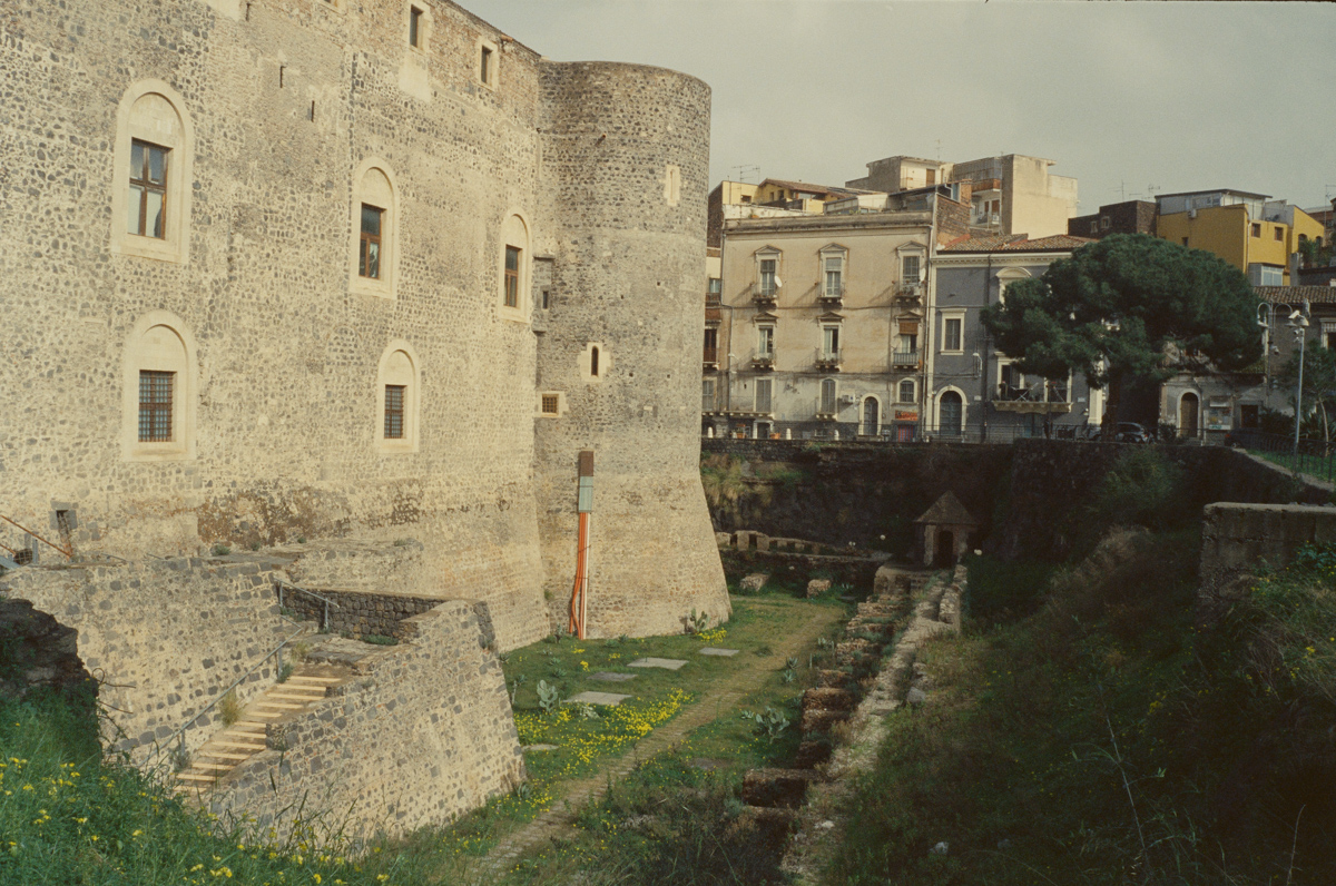 am abend schlendern wir durch catania, die vorbereitungen für das große fest zu ehren der hlg agatha laufen. gegenüber eine alte tabakfabrik. kaffee am porta garibaldi, wir stolpern über das castello ursino, gebaut vom staufer friedrich ii.