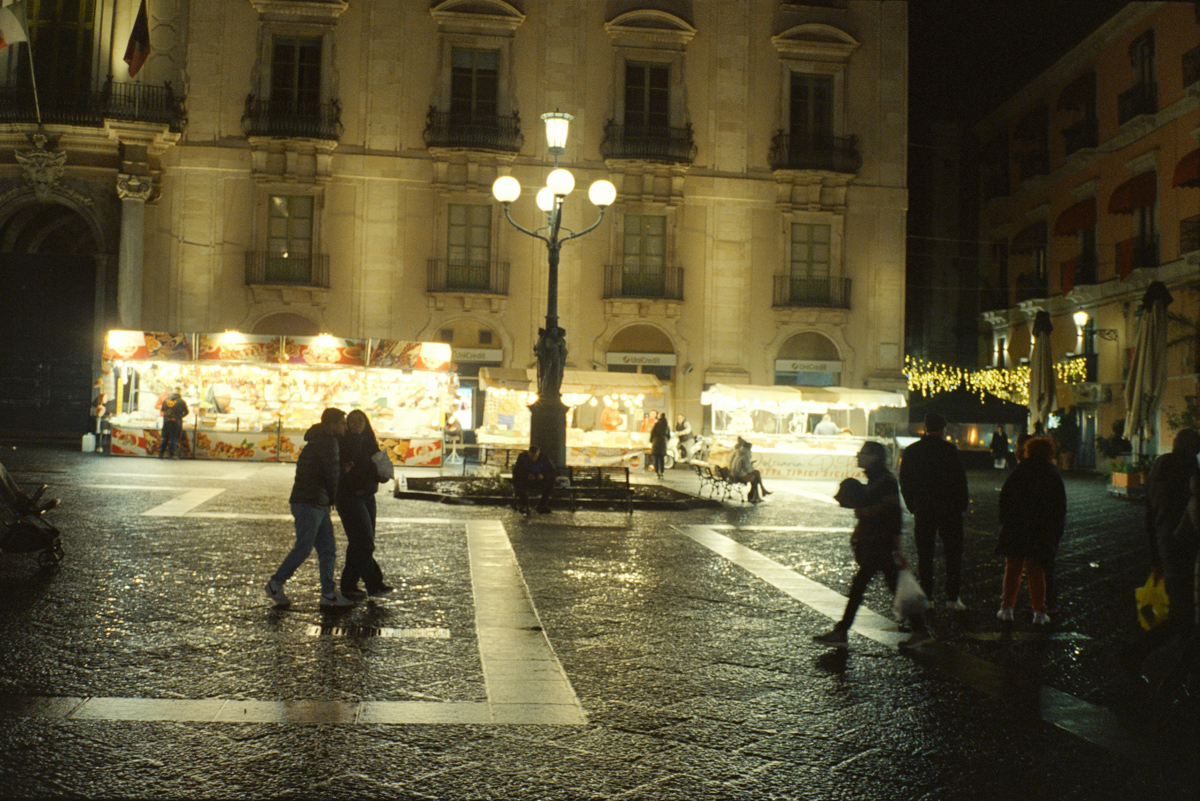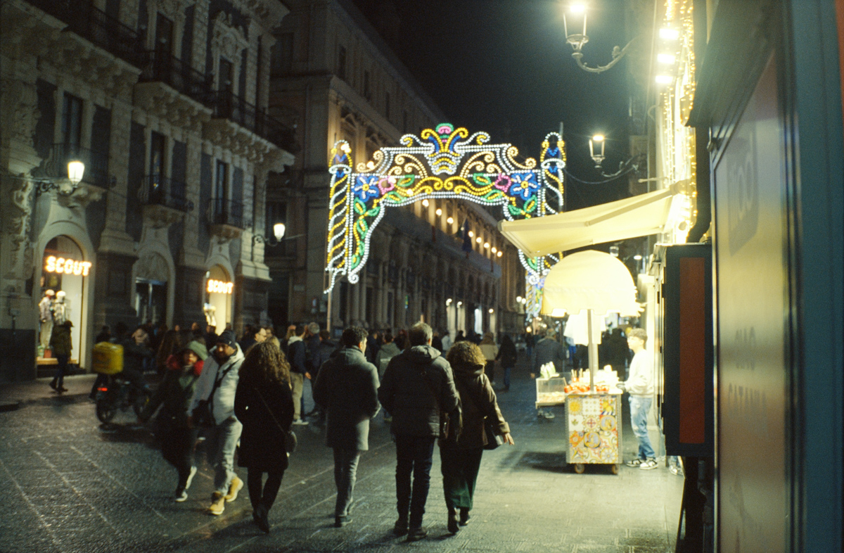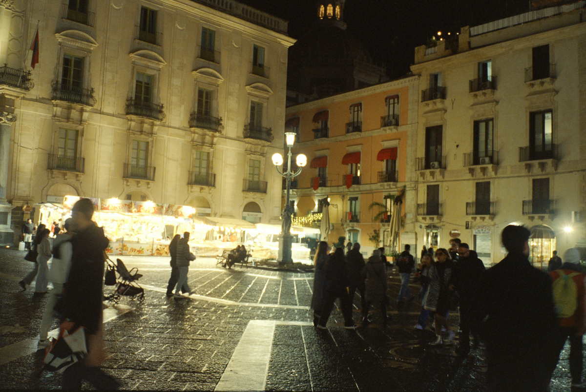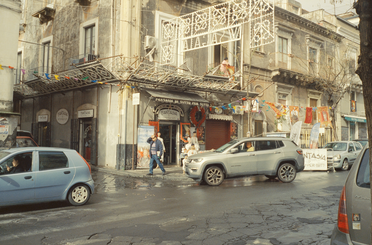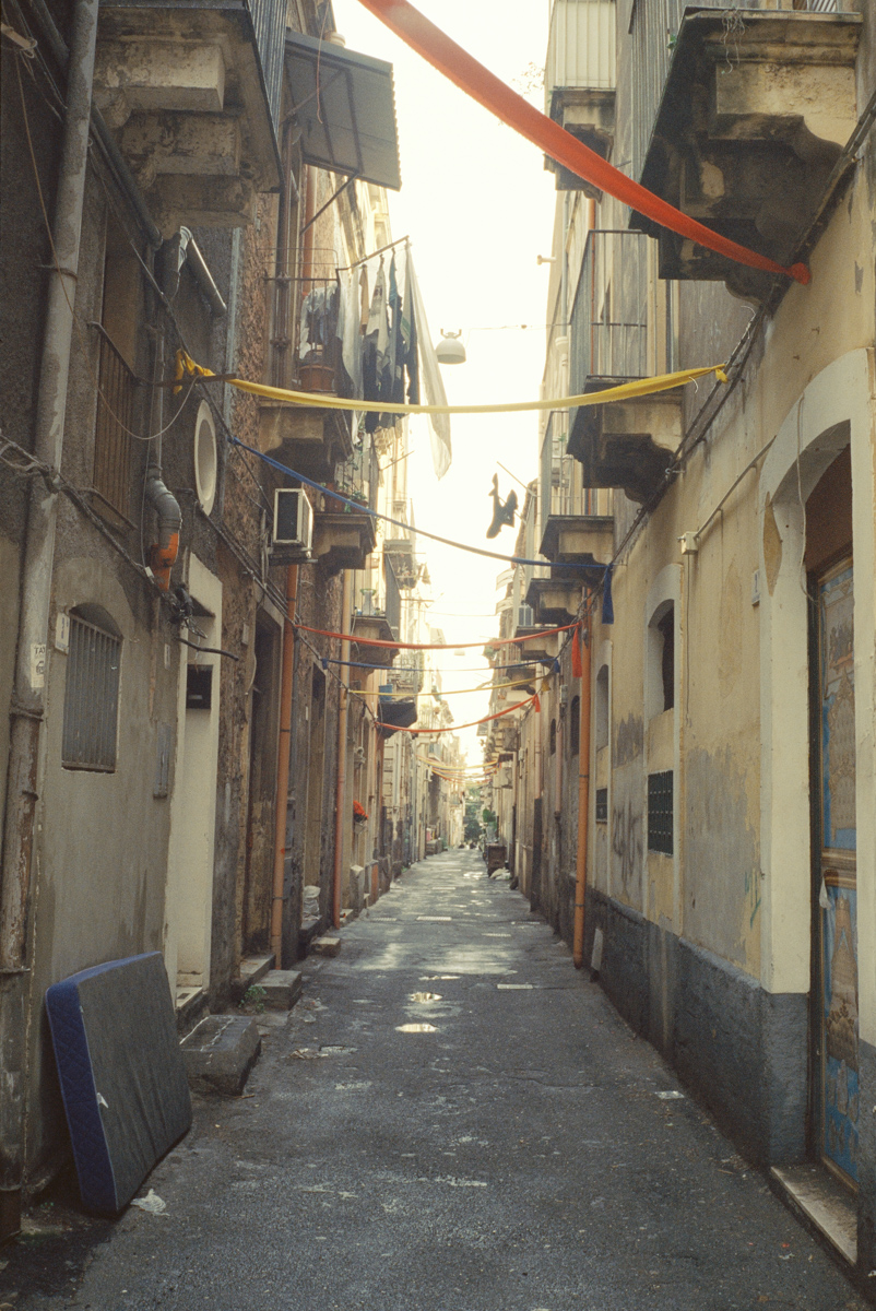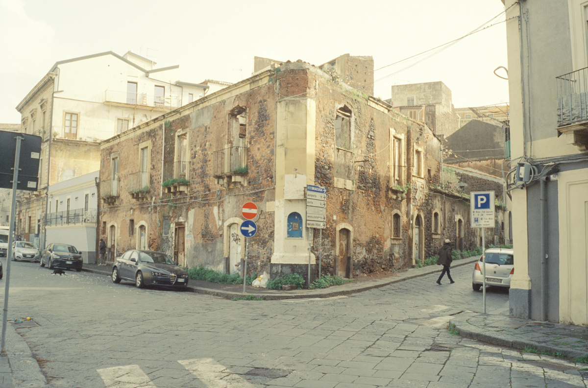 am abend schlendern wir durch catania, die vorbereitungen für das große fest zu ehren der hlg agatha laufen. gegenüber eine alte tabakfabrik. kaffee am porta garibaldi, wir stolpern über das castello ursino, gebaut vom staufer friedrich ii.