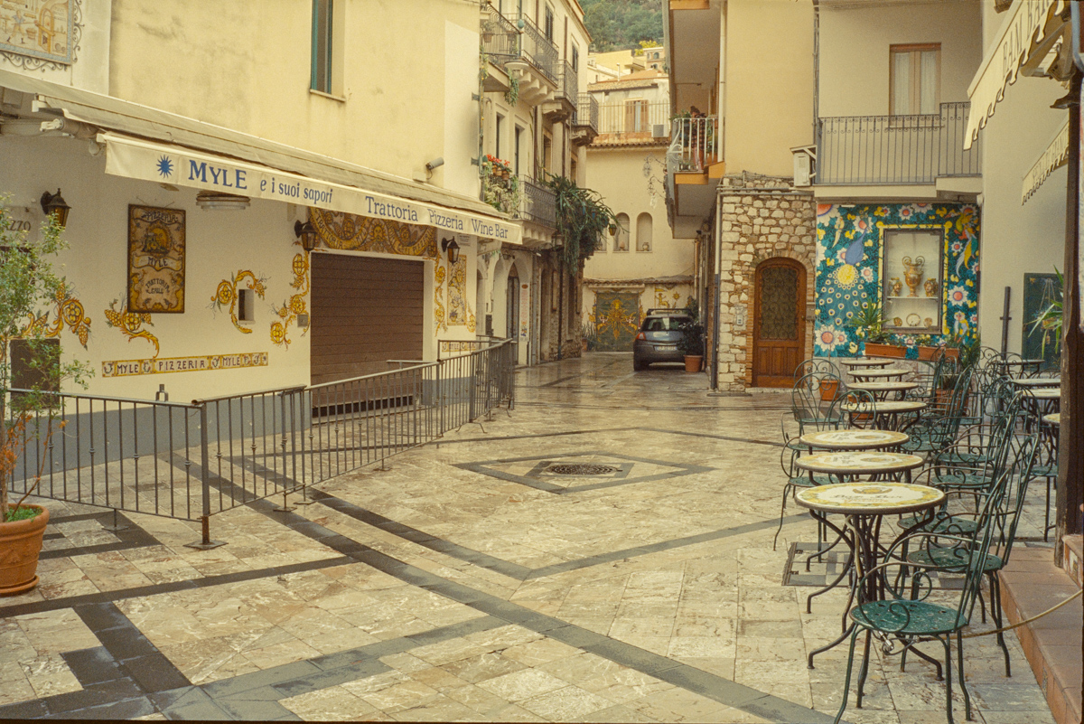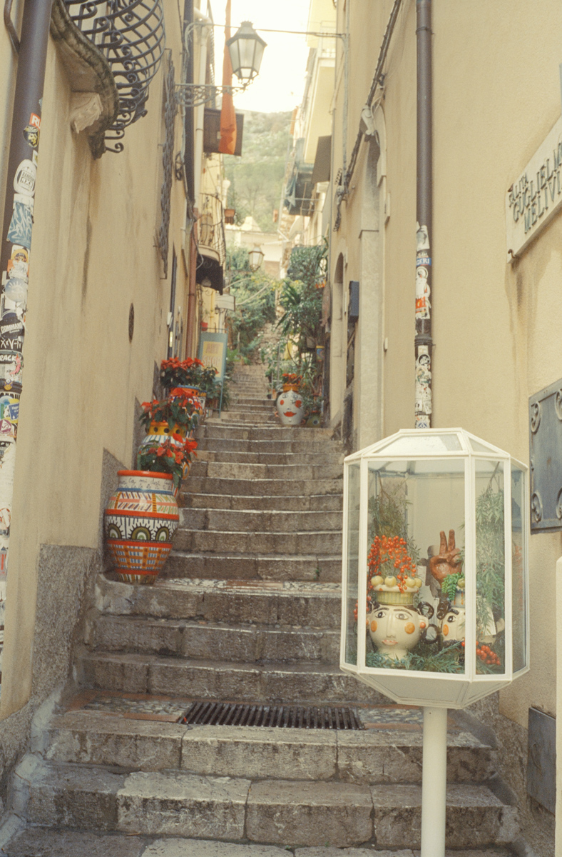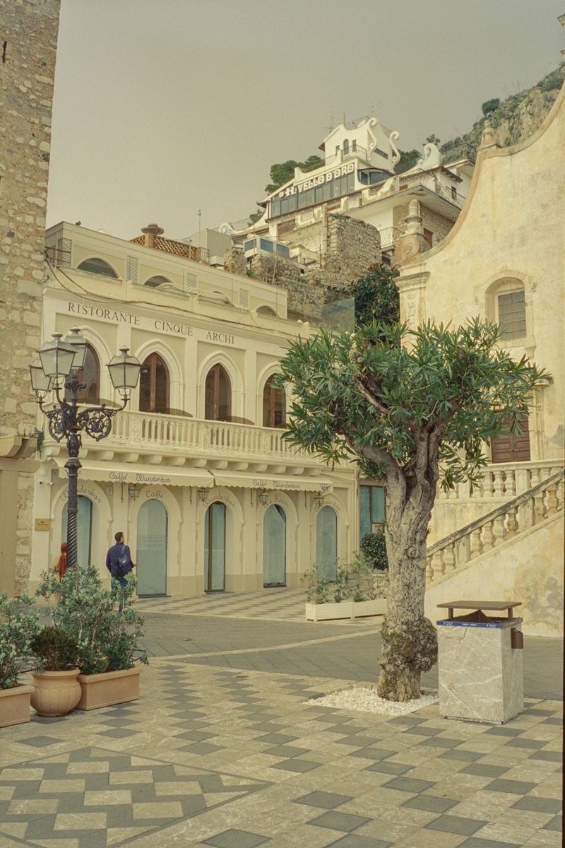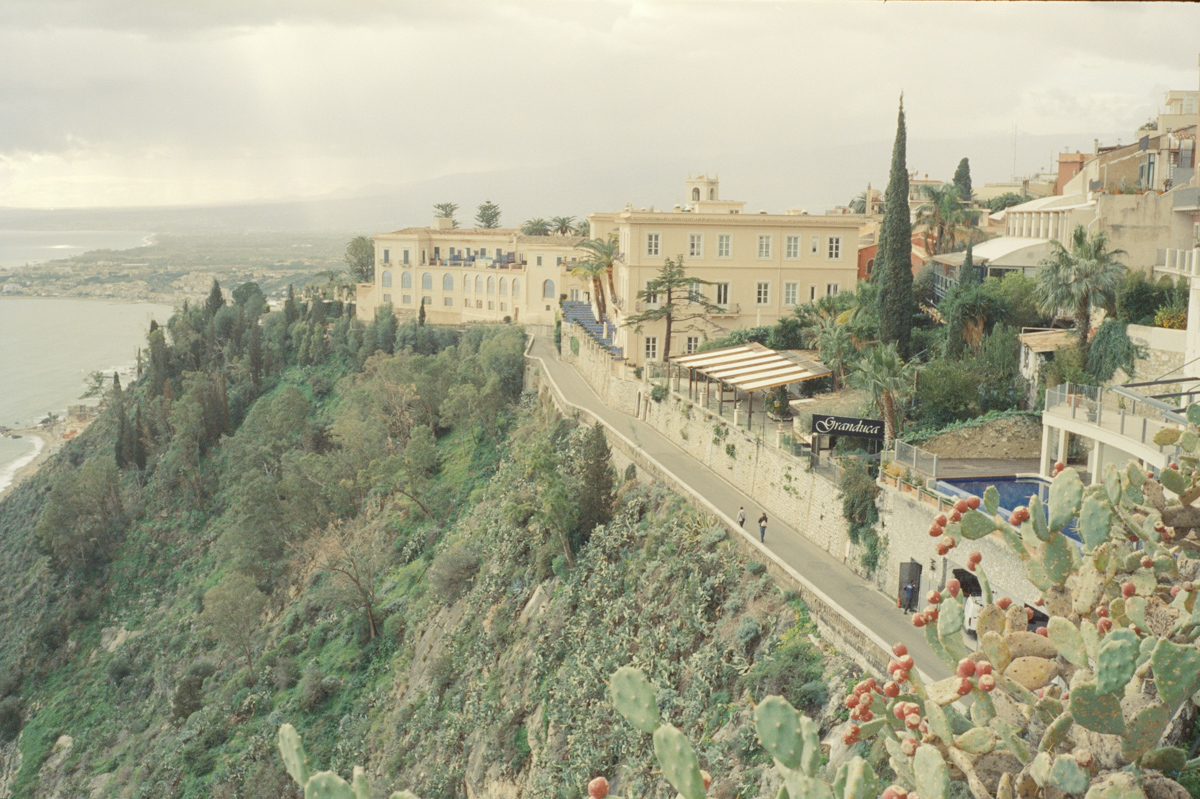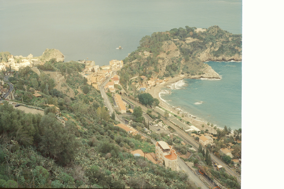 mit dem bus nach taormina, das erstaunlich gut organisierte linienbussystem ist sehr gut organisiert. alles klappt, online tickets buchen und einsteigen. die fahrt zur stadt auf dem berg ist abenteuerlich, vom busplatz noch laufen in die stadt. es ist wenig los und der blick aufs meer und auf die kleine isola bella sehr beeindruckend.