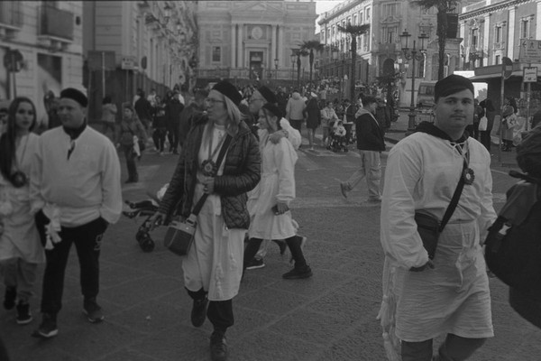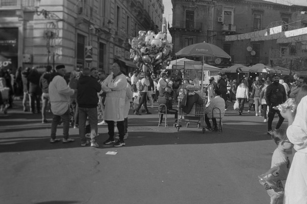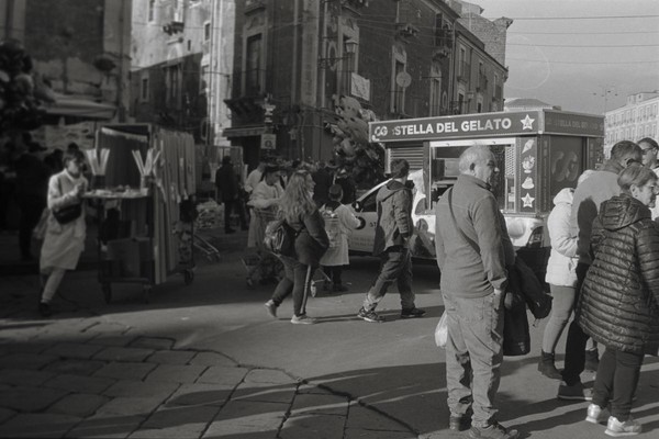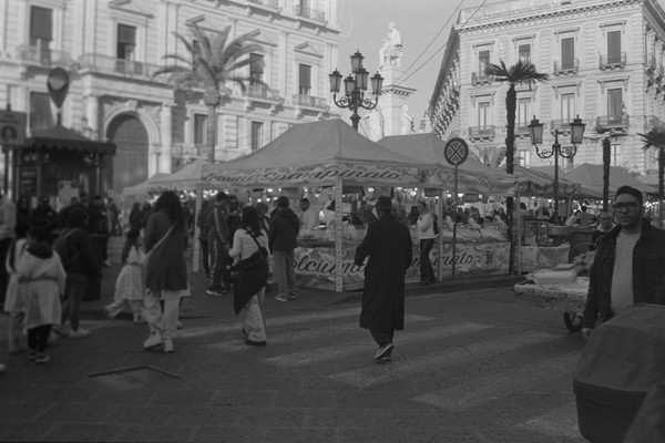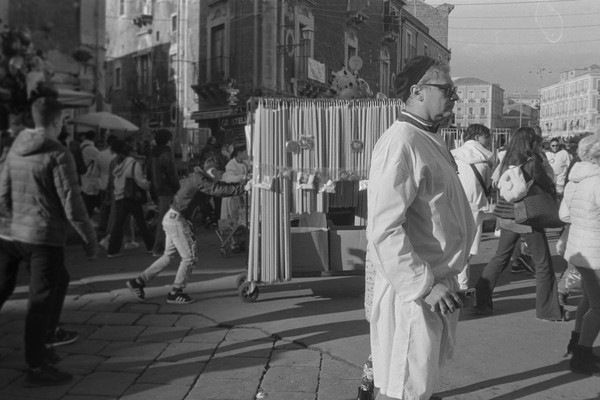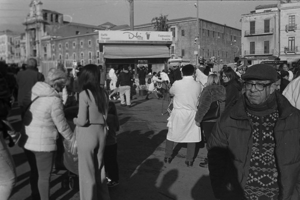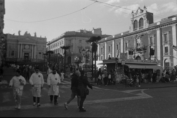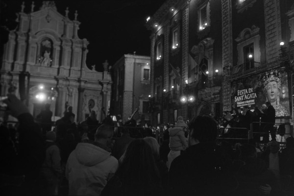 noch mehr taormina und blick aufs mehr. abends zum fest der hlg agathe, es gibt feuerwerk und süßkram. am nächsten tag wieder feuerwerk (tagsüber!) und noch mehr umzüge.