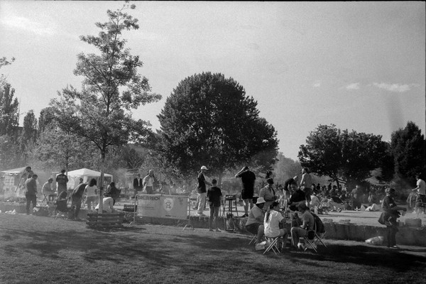000348 - 05/25 Jun 12, 2025 📷 Leica M5 🎞️ Agfa APX 100 🥫 ZONE IMAGING DeFehr´s 510 Pyro 1+100 16min 💻 Sony Alpha 6000 kurztrip nach warnemünde und mauerpark im mai - da wird ordentlich gegrillt. 📂 35mm berlin 🏷️ berlin warnemünde rostock brandenburger tor mahnmal mitte kriegsende mauerpark prenzlauer berg wollankstraße